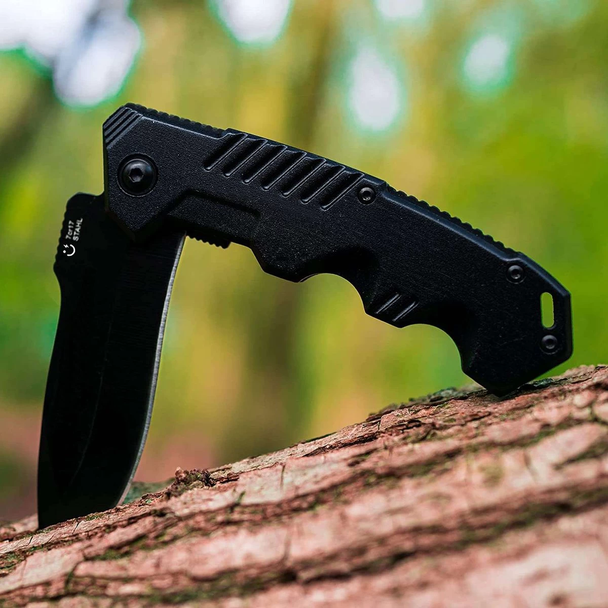 - Compact : une fois plié, le couteau de poche ne mesure que 10,4 cm et pèse 320 g. Avec l’étui de transport en nylon inclus, il est facile à attacher à une ceinture. De cette façon, le couteau de poche est toujours à portée de main.