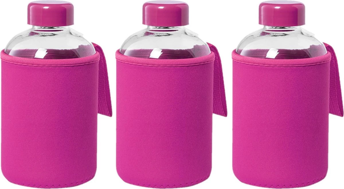 3x Bouteille D’eau/bidon En Verre Avec Housse De Protection Softshell Rose Fuchsia 600 Ml – Gourde De Sport – Gourde De Sport