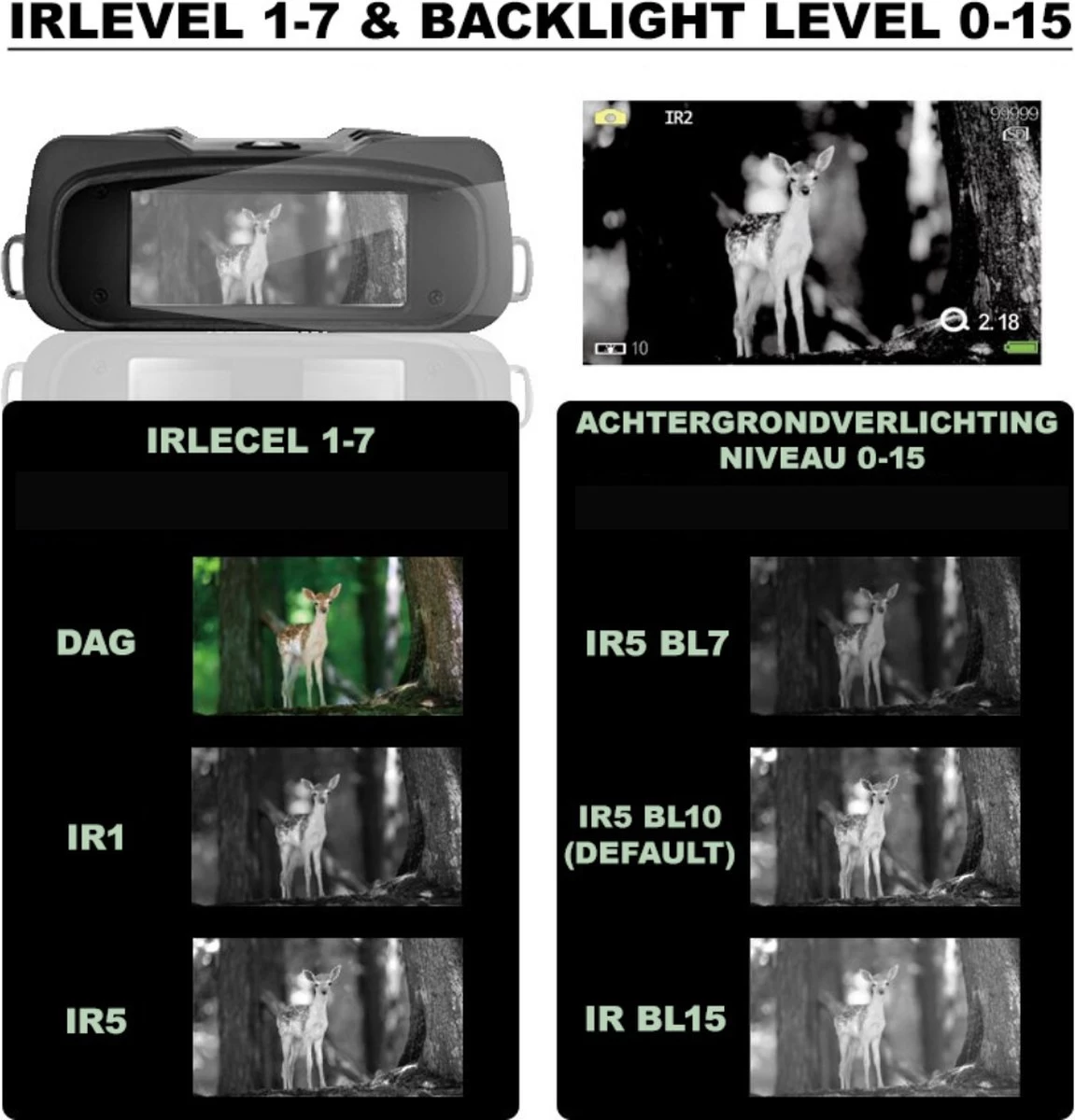 Ben vous un amateur de plein air, amoureux de la nature? lunettes de vision nocturneBoulon a tout ce dont vous avez besoin. Avec leJumelles avec vision nocturne est-ce que tout le monde est capable desauvage se moquer. Lavision nocturne avec infrarouge a beaucoupdifférentes fonctions . De1080P te rendre la plus bellephoto ´s dans lelumière etfoncé . avec 6x grossissement optique etZoom numérique 4x vous voyez tout à la pelle quand vous sortez dans la nature. Lavie de la batterie de lalunettes de vision nocturne n’est pas moins que11 heures . Vous pouvez donc l’utiliser toute la journéelunettes de vision nocturne ! Lajumelles qui est équipé deinfrarouge est capable, par exemple, de repérer facilement le loup jusqu’à400M ! La caméra estmultifonctionnel ce qui signifie que vous deux Photos sividéos peut être fait en appuyant sur un bouton.