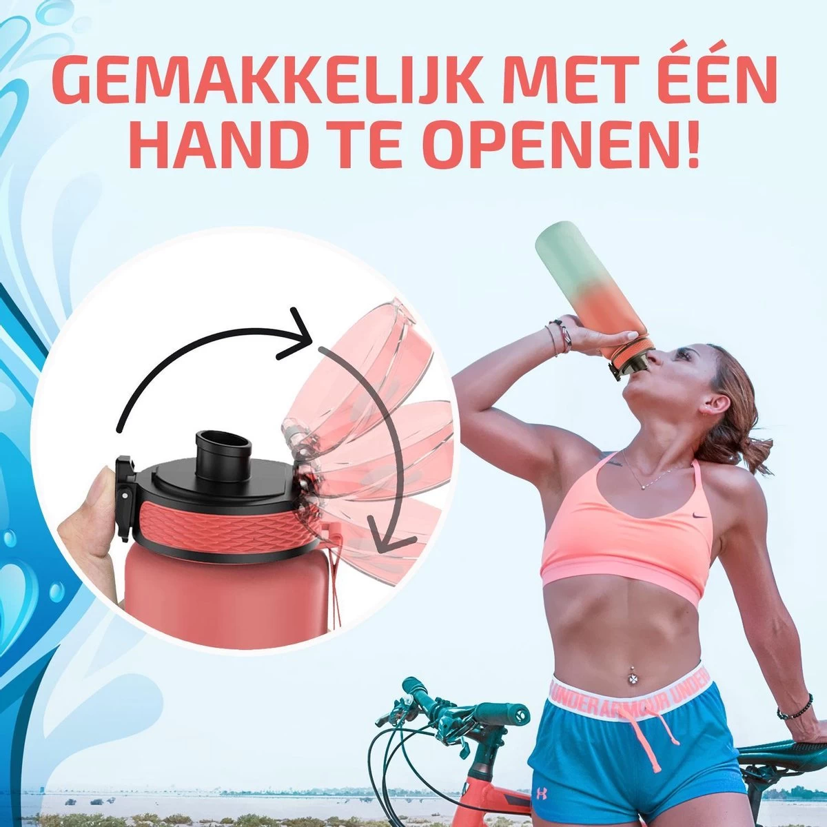 Nos bouteilles d’eau sans BPA sont conçues pour vous offrir la meilleure expérience de consommation possible. Par exemple, les bouteilles en Tritan incassable n’ont aucune influence sur le goût et offrent beaucoup de facilité d’utilisation! Le système de clic est facile à utiliser d’une seule main et le débit d’eau rapide garantit que vous pouvez boire beaucoup d’eau rapidement. En même temps, l’anneau en silicone et la double fermeture garantissent que vous n’avez jamais à vous soucier d’une fuite de bouteille.