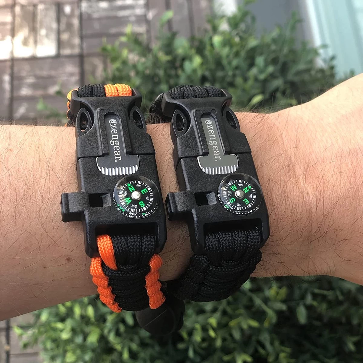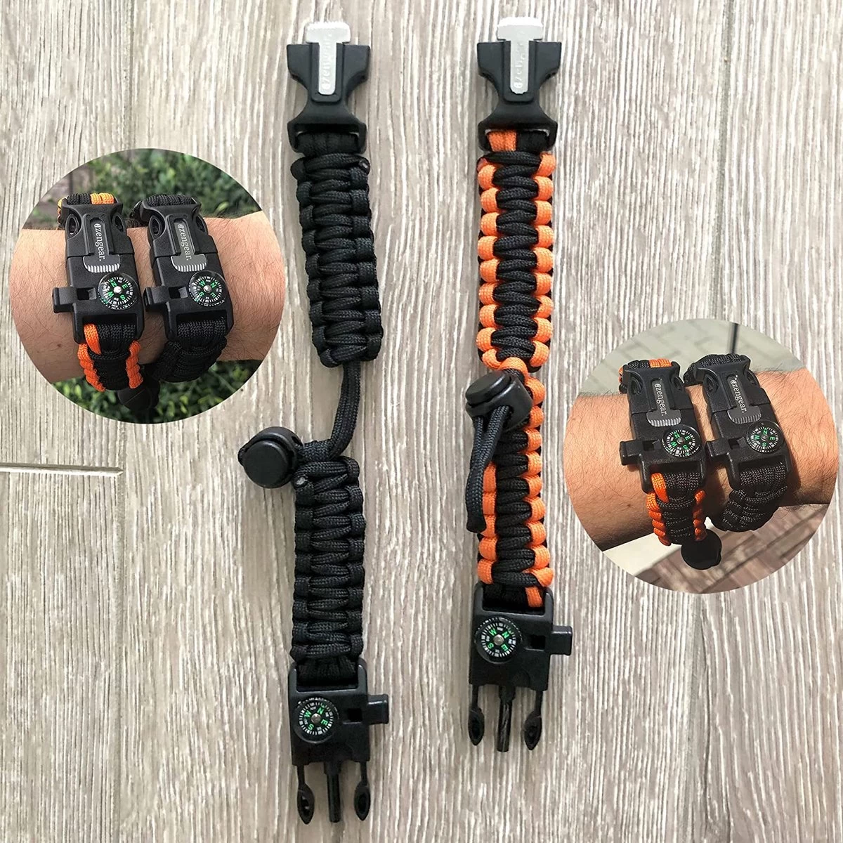 Bracelet De Survie En Cordon De Parachute (paire) – Allume-feu En Silex Et Acier, Sifflet, Boussole, Taille De Bande Réglable Pour Le Camping, La Survie, L’équipement D’urgence