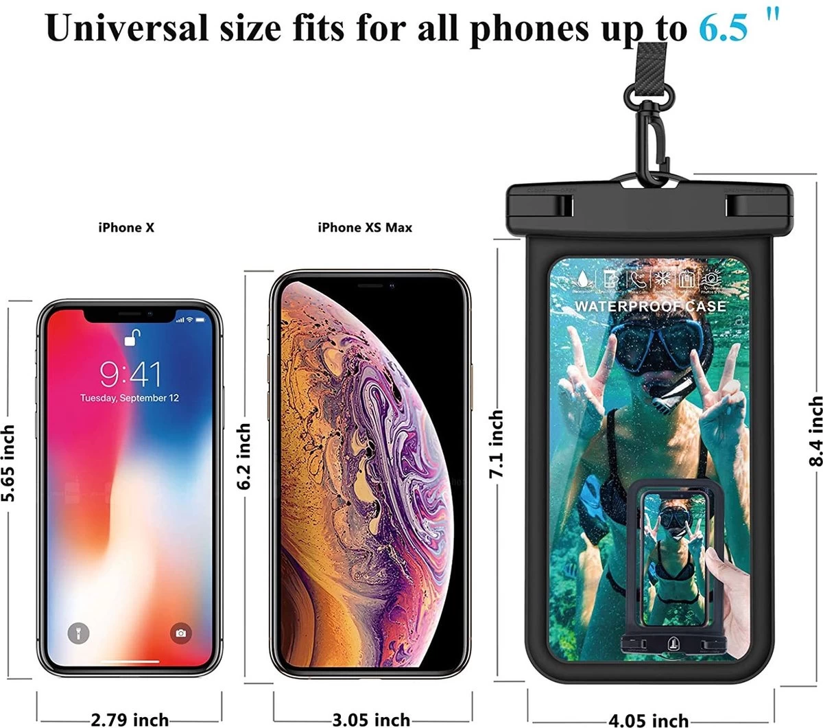 Vous cherchez des coques de téléphone étanches ? Avec cette coque de téléphone sous-marine, vous pouvez facilement prendre des photos sous l’eau. Cette coque de téléphone sous-marine unique dispose également d’une fonction airbag intégrée unique. La fonction airbag garantit que si vous perdez votre téléphone sous l’eau, le téléphone flottera automatiquement vers le haut. Ainsi, vous retrouverez toujours votre téléphone, même sous l’eau ! La pochette étanche a une certification IPX8 ce qui signifie qu’elle est étanche jusqu’à 30 mètres sous l’eau ! Idéal si vous souhaitez également faire de la plongée sous-marine et prendre des photos. L’étui de téléphone résistant à l’eau est livré avec un cordon que vous pouvez attacher au sac. Cela permet de porter la housse autour du cou, c’est donc idéal en vacances ! La coque protège votre téléphone contre l’eau, la neige, les rayures et la saleté et est fabriquée en caoutchouc TPU de haute qualité. L’écran tactile de votre téléphone continue de fonctionner car il contient une feuille supérieure et le dos est également transparent afin que vous puissiez utiliser votre appareil photo. La coque est universellement adaptée à tous les smartphones jusqu’à 6,9 pouces. Les smartphones tels qu’un iPhone 13 Pro Max (6,5 pouces) ou un Samsung Galaxy Note 20, S22, S21, S21 FE ne posent aucun problème pour cette coque.