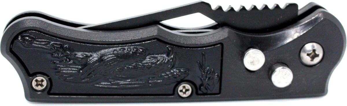 La lame en acier inoxydable est tranchante comme un rasoir d’un côté et l’autre bord a des dents émoussées.