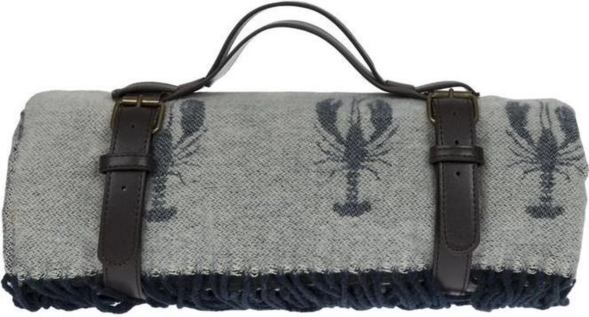 Cette couverture de pique-nique gris clair merveilleusement douce a un joli motif avec des homards bleu foncé et est de la marque de style de vie anglaise Sophie Allport. La couverture de pique-nique a un support résistant à l’eau, ce qui la rend idéale pour aller au parc, s’étendre sur l’herbe et savourer un bon déjeuner. Pratique à emporter partout avec vous, grâce aux bretelles en similicuir avec poignée.