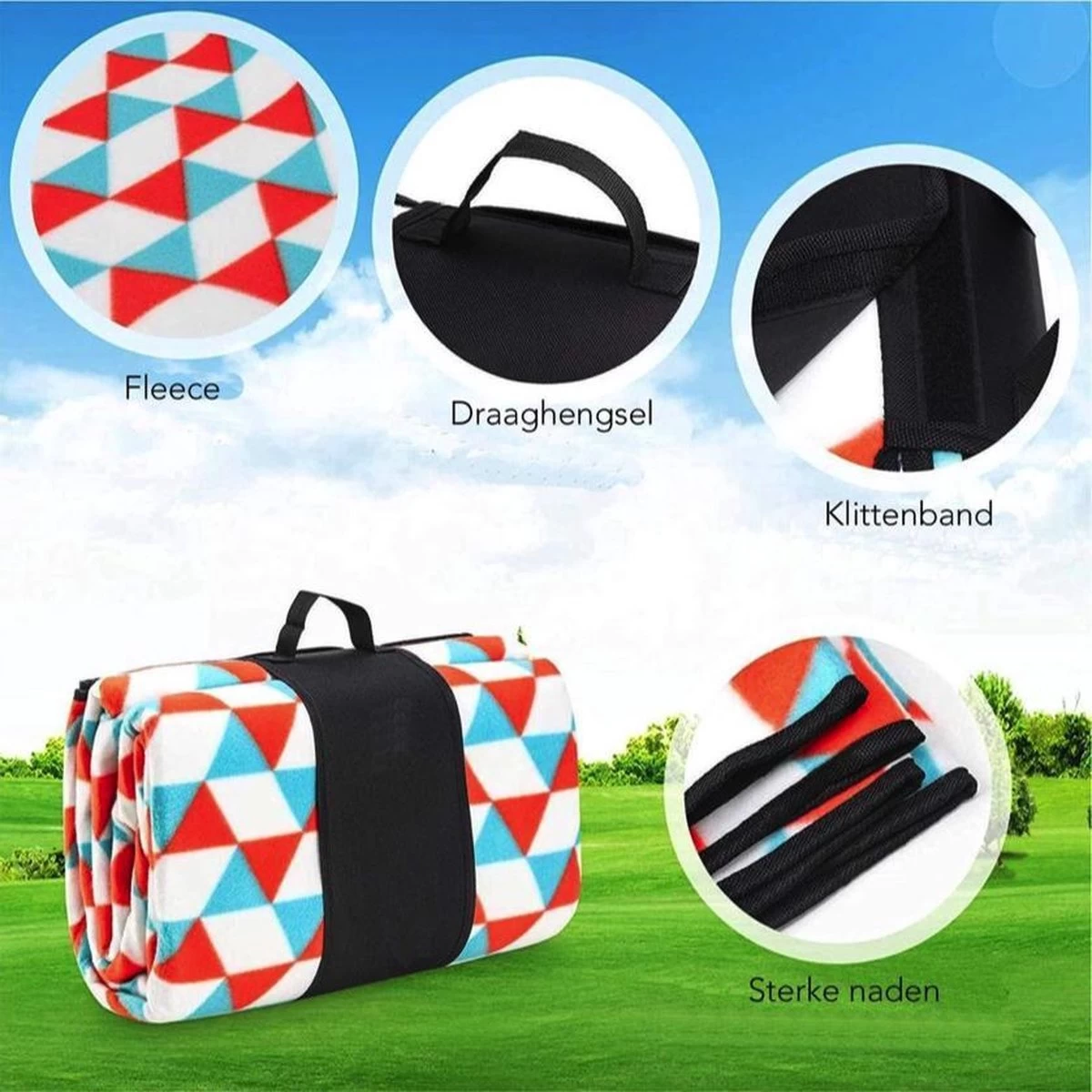 La housse extérieure imperméable est facile à emporter avec vous pour toutes sortes d’activités. Malgré la grande taille du tapis, il est facile de le plier en un petit paquet et de le fixer avec une fermeture Velcro. La couverture de pique-nique comprend également une sangle de transport, ce qui la rend facile à emporter avec vous. Emportez la couverture de pique-nique pour toutes sortes d’activités, comme prendre un bain de soleil dans le parc, un bon pique-nique ou même à la plage. Mais le tapis est également pratique dans la cour de récréation ou dans la cour!