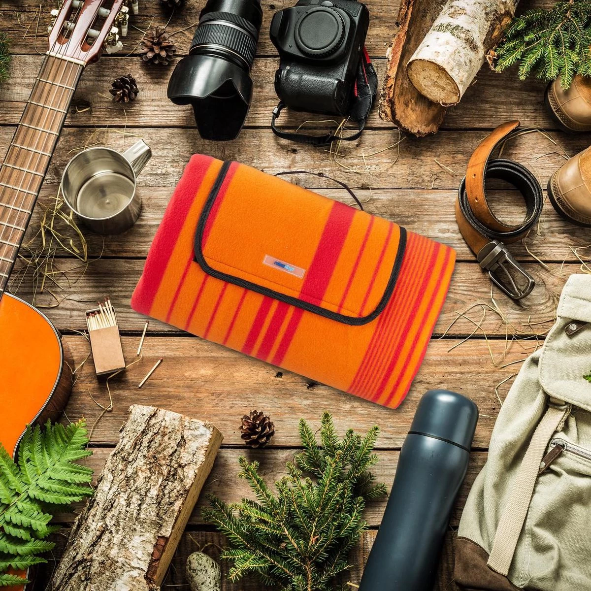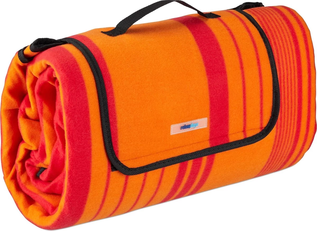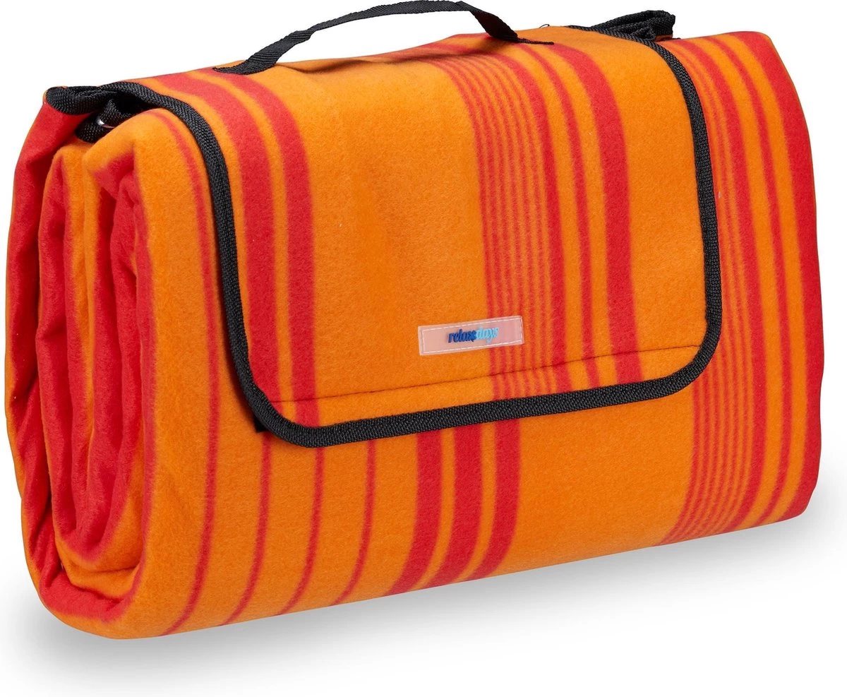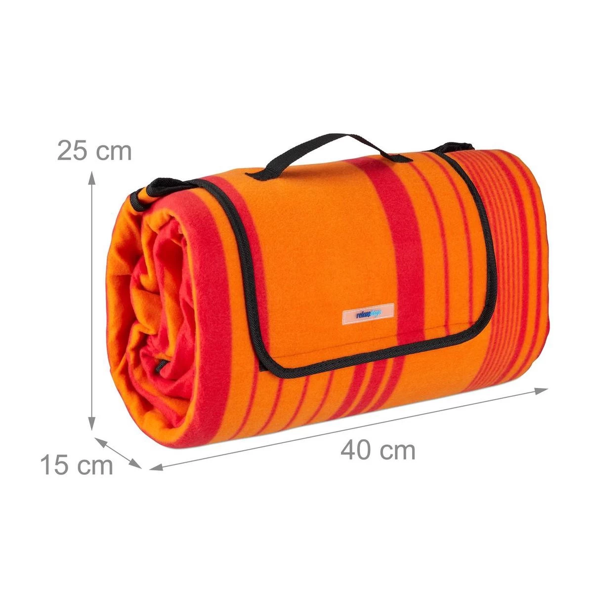Couverture De Pique-nique Relaxdays – 200×200 – Couverture Polaire – Tapis D’extérieur – Orange Rouge – Rayé