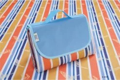 Tapis De Plage / Tapis De Pique-nique Facilement Pliable Dans Un Sac 145x200cm Bleu Et Blanc