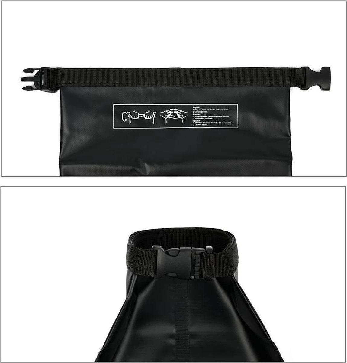 Pour fermer et fermer ce sac étanche, retournez l’ouverture trois / quatre fois et fermez-la avec la fermeture à clip sur les côtés. Si cet Ocean Bag n’est pas utilisé, il peut être plié à l’intérieur uniquement de poignées et peut être transporté de manière peu encombrante.