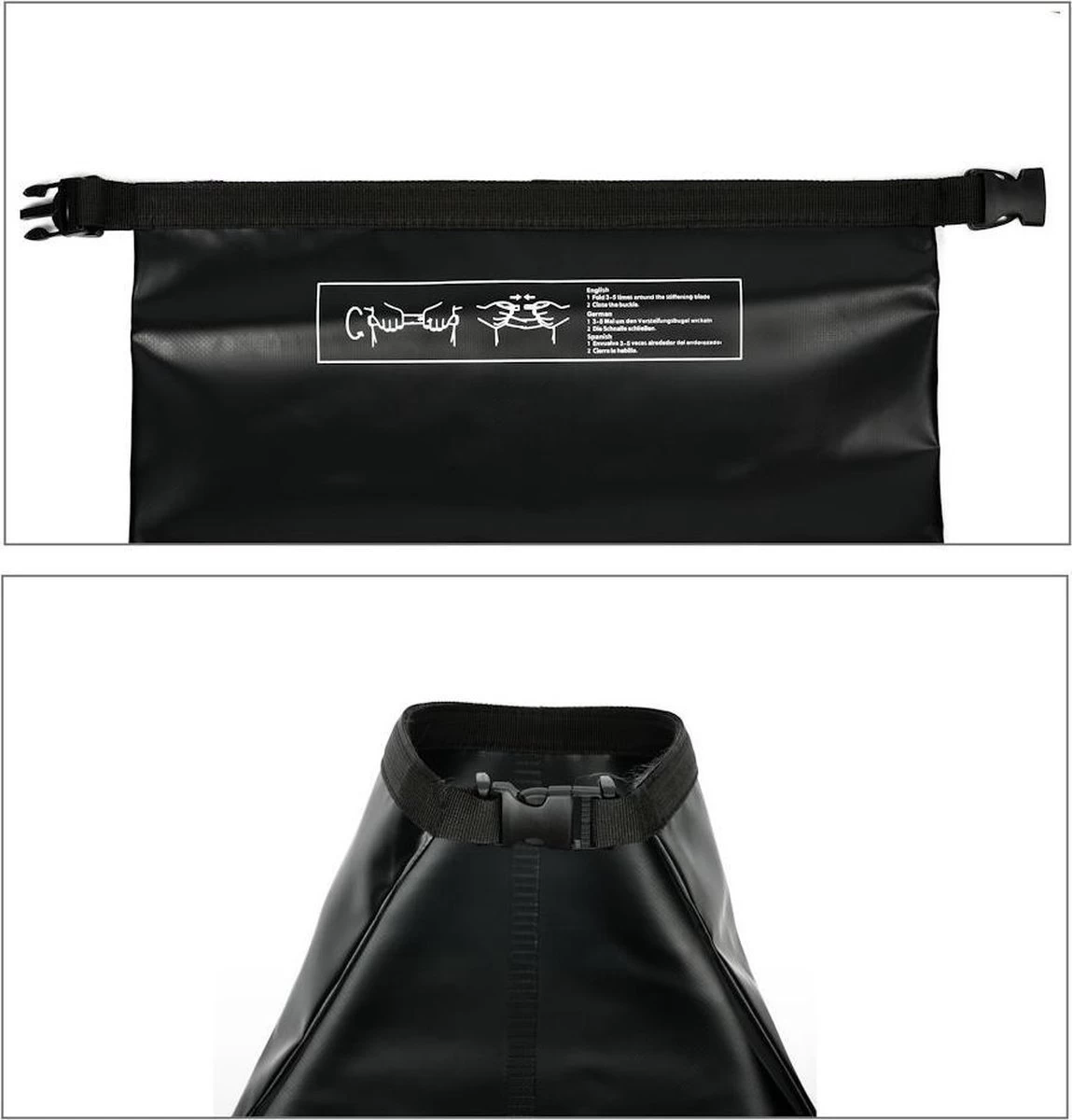 Pour fermer et fermer ce sac étanche, retournez l’ouverture trois / quatre fois et fermez-la avec la fermeture à clip sur les côtés. Si cet Ocean Bag n’est pas utilisé, il peut être plié à l’intérieur uniquement de poignées et peut être transporté de manière peu encombrante.