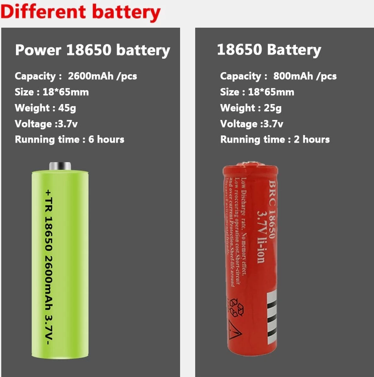 • Batterie : 2×18650 (inclus 2600mAh jusqu’à 6 heures de lumière)