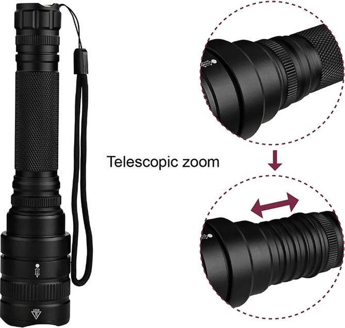 Zoom télescopique : la lampe de poche DrPhone peut zoomer et dézoomer. Cela vous donne le choix entre un faisceau lumineux plus large et un faisceau lumineux centralisé.