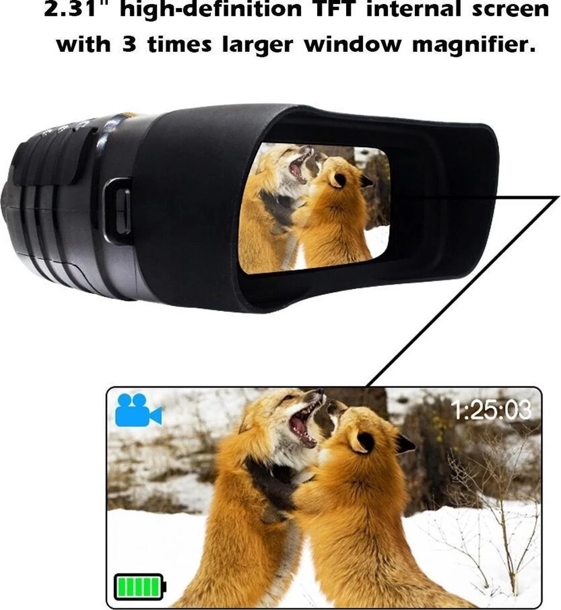 La fonction Vidéo enregistre 720P HD , vous pouvez donc enregistrer les plus beaux fragments d’image. La Vision nocturne prend en charge jusqu’à 32 Go de carte TF, il existe un écran TFT HD de 2,31 pouces qui grossit 3x. En raison de l’ouverture élargie, vous n’avez pas à vous asseoir les yeux sur les bonnets, ce qui le rend également plus relaxant pour les yeux.