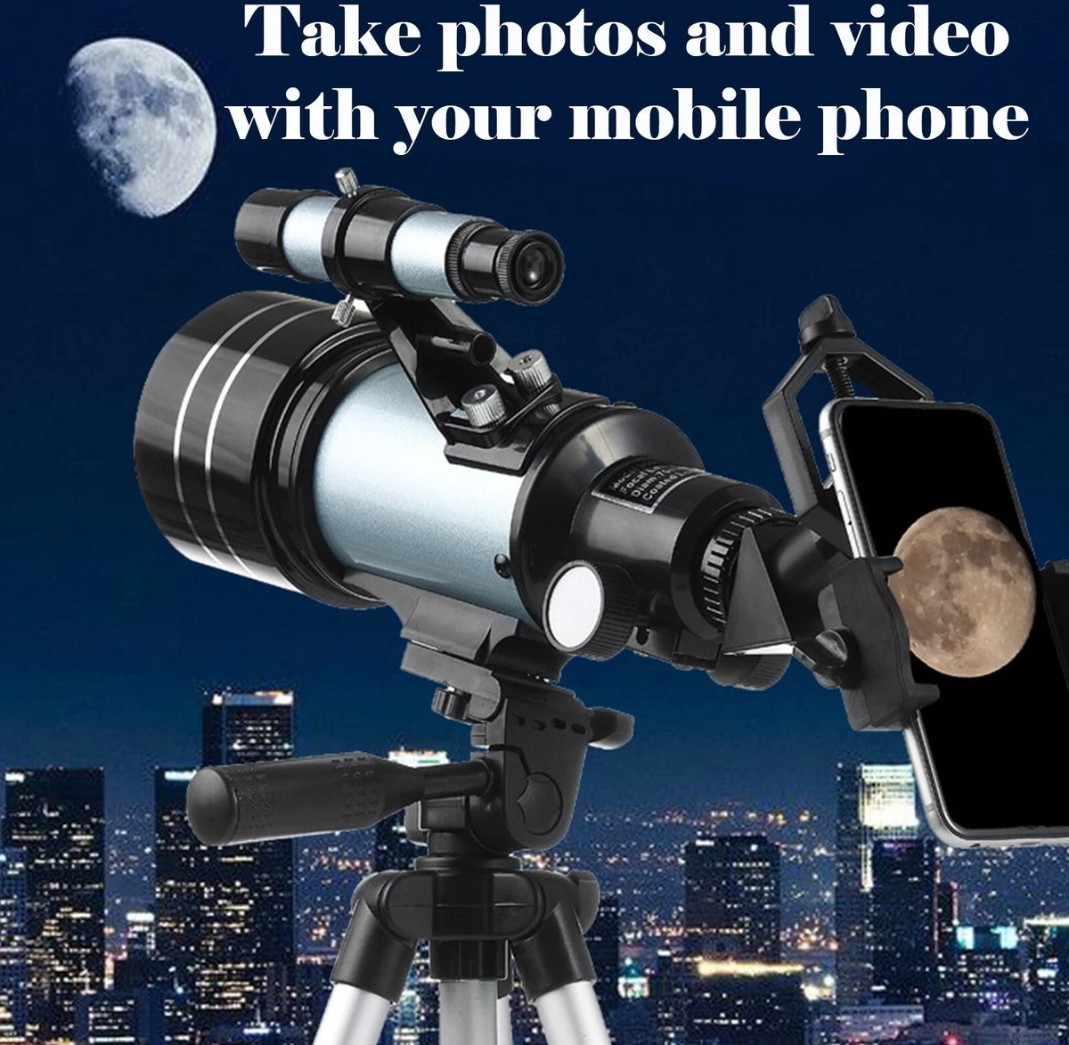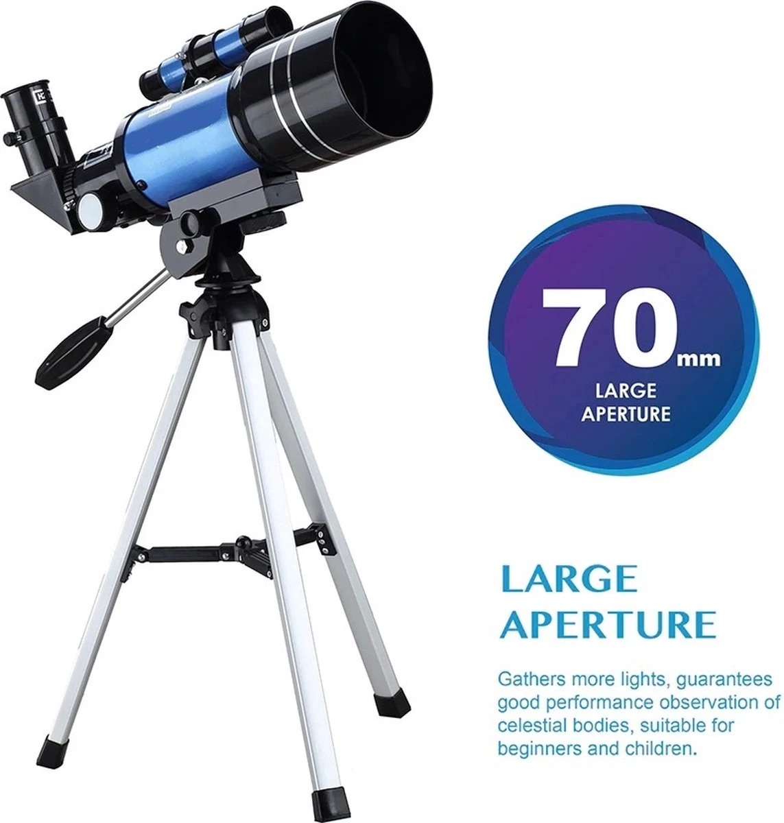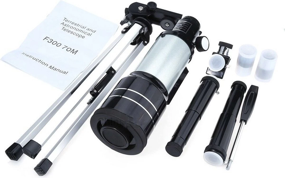 300 mm x 70 mm : Ce télescope astronomique a une distance focale de 300 mm et une grande ouverture de 70 mm. Les lentilles multicouches à transmission lumineuse élevée rendent les objets plus lumineux et plus clairs. Le télescope a une lens en verre optique entièrement multicouche, qui améliore la clarté et protège vos yeux.