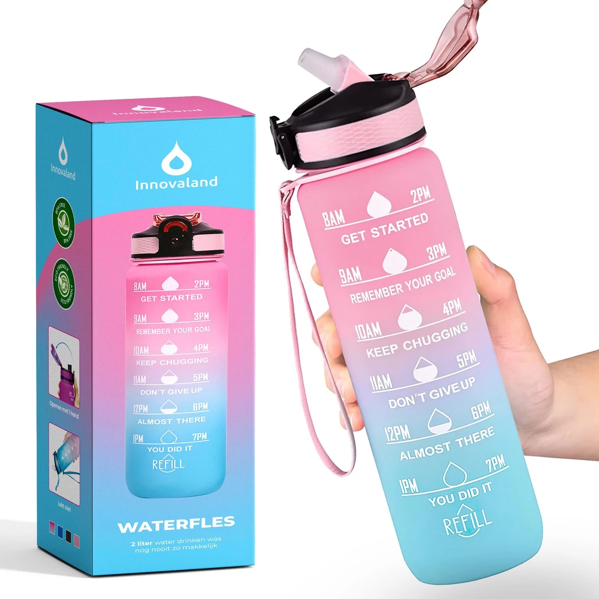 Gourde 1 Litre Premium – Gourde Motivationnelle – Gourde Enfants – Sans BPA – Gourde Avec Paille – Avec Marqueurs De Temps – Adultes – Gourde Avec Paille Adultes – Gourde Avec Paille Adultes –