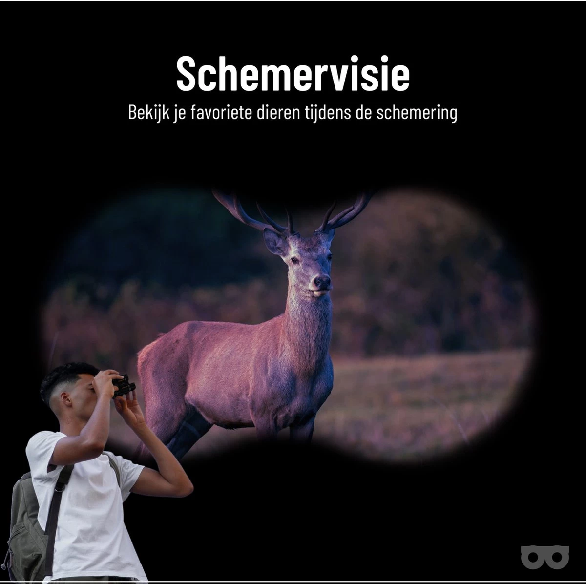 Nos jumelles ont un revêtement FMC et un facteur crépusculaire de 21. Cela rend les jumelles extrêmement appropriées lorsqu’il fait un peu plus sombre. Indispensable lors d’un concert ou lorsque vous sortez au petit matin. La visibilité n’est bonne qu’au crépuscule et non dans l’obscurité totale.