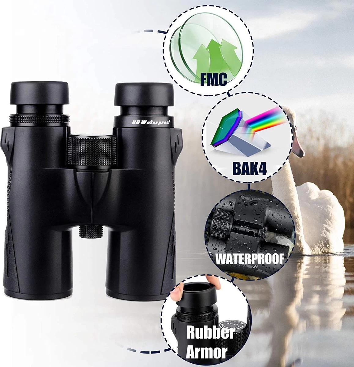 Le grossissement 8x et l’objectif de 42 lens offrent un excellent équilibre entre le poids et les performances optiques ; adapté à toutes les conditions, telles que l’observation astronomique des oiseaux de chasse