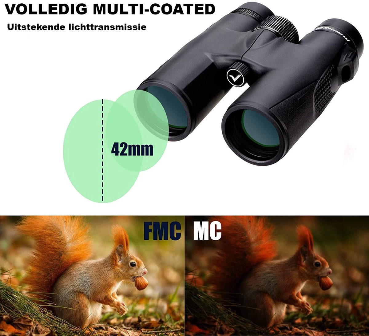 Peu de lumière est perdue en raison du prisme BAK4. Avec l’indice de réfraction élevé, il n’y a pas de distorsions dans l’image, vous ne voyez pas de bords doubles ou bleus autour des objets et il n’y a pas de bord extérieur sombre. De cette façon, vous conservez une clarté optimale et des images d’une netteté remarquable. Les couleurs restent également pétillantes. Perfect si vous voulez apercevoir des oiseaux ou profiter des magnifiques paysages que la nature a à offrir.