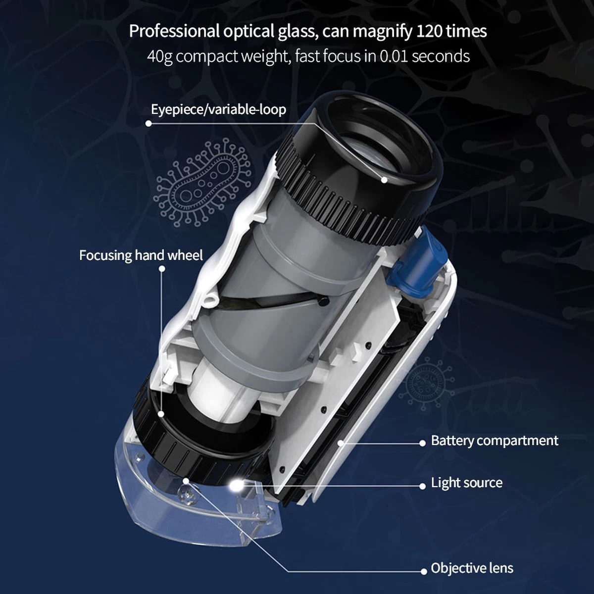 Ce microscope portatif amusant et facile à transporter rendra chaque enfant curieux du micro-monde.