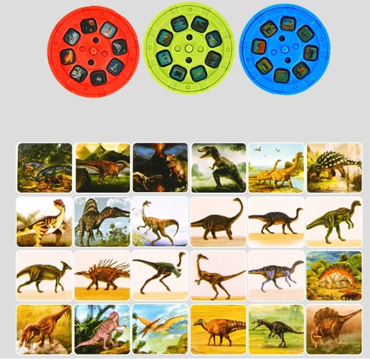 Lampe de poche dinosaure super cool avec laquelle vous pouvez briller dans l’obscurité, mais aussi des images Dino super cool peuvent être projetées sur le mur.