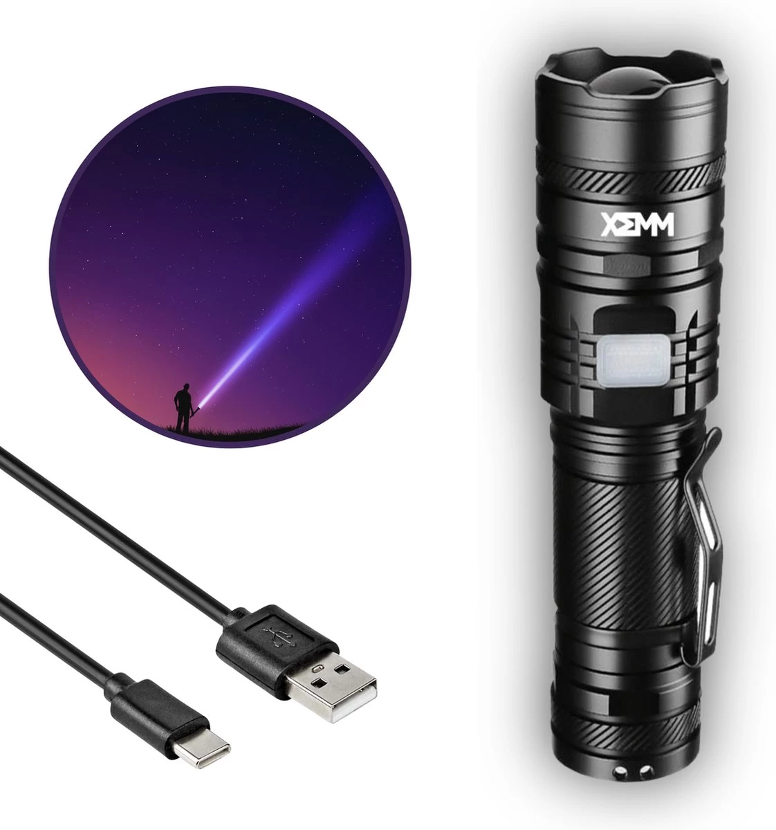 Toutes les lampes de poche XEMM® PRO sont livrées avec une batterie extrêmement puissante. Cette batterie au lithium ne peut être comparée à des concurrents dans cette gamme de prix en raison de ses performances extraordinairement meilleures. Les voyants lumineux indiquent exactement quand la lampe de poche doit être chargée. Brandt le voyant est rouge, la lampe de poche doit être chargée. Avec le câble USB-C inclus, la lampe de poche peut être facilement chargée en quelques heures. Dès que le voyant redevient vert, la lampe de poche est à nouveau suffisamment chargée. La très grande capacité de la batterie rend la lampe de poche idéale pour les promenades nocturnes. Il convient également aux petites occasions comme trouver le bloc sanitaire du camping en pleine nuit.