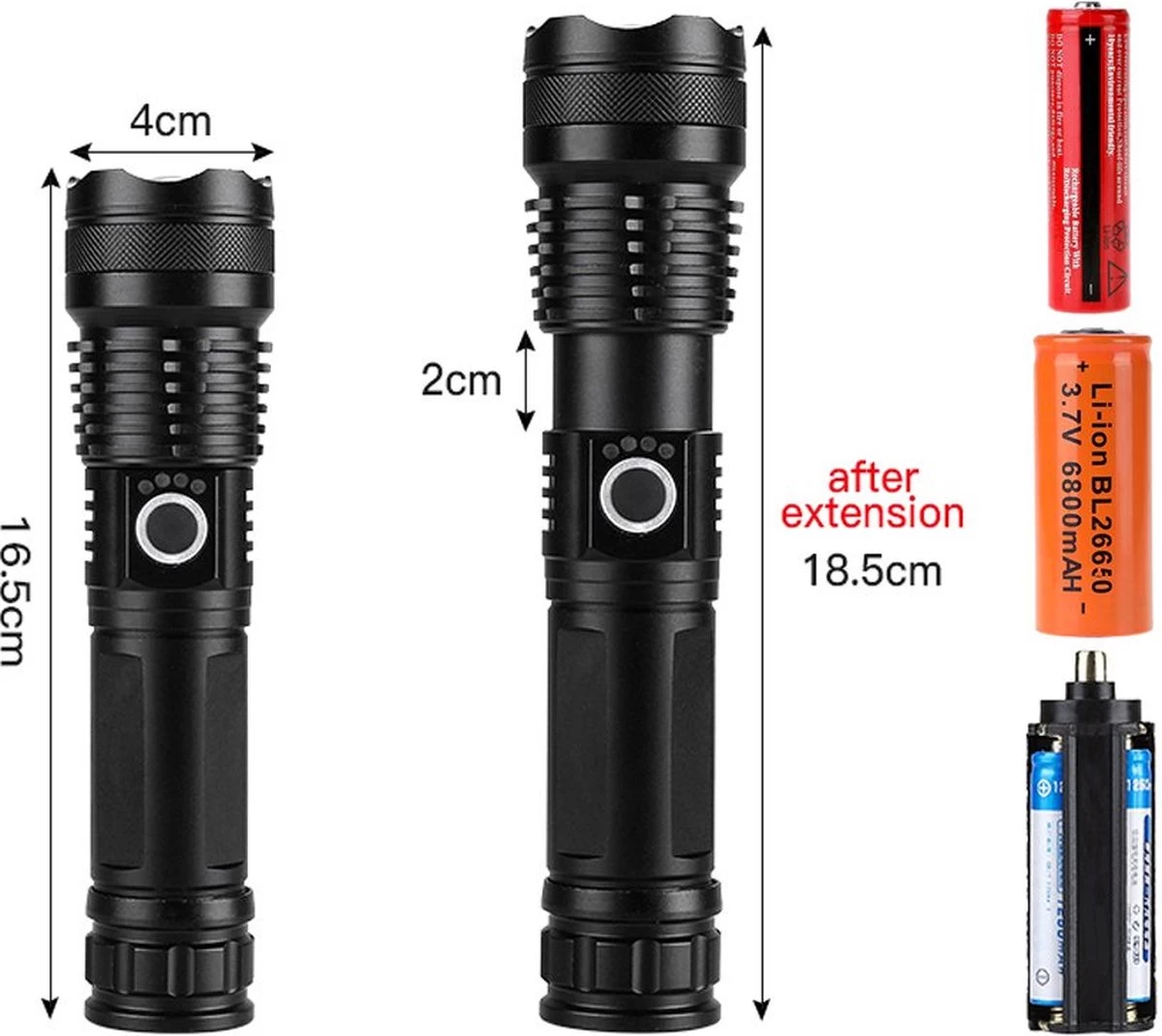 Le câblage interne utilise un circuit booster très efficace avec une large tension de fonctionnement pour maximiser l’utilisation de la batterie.Alimenté par une batterie 18650 (la batterie est incluse). Prise en charge du chargement USB , vous pouvez charger via un ordinateur portable, un chargeur de voiture, une banque d’alimentation, etc.