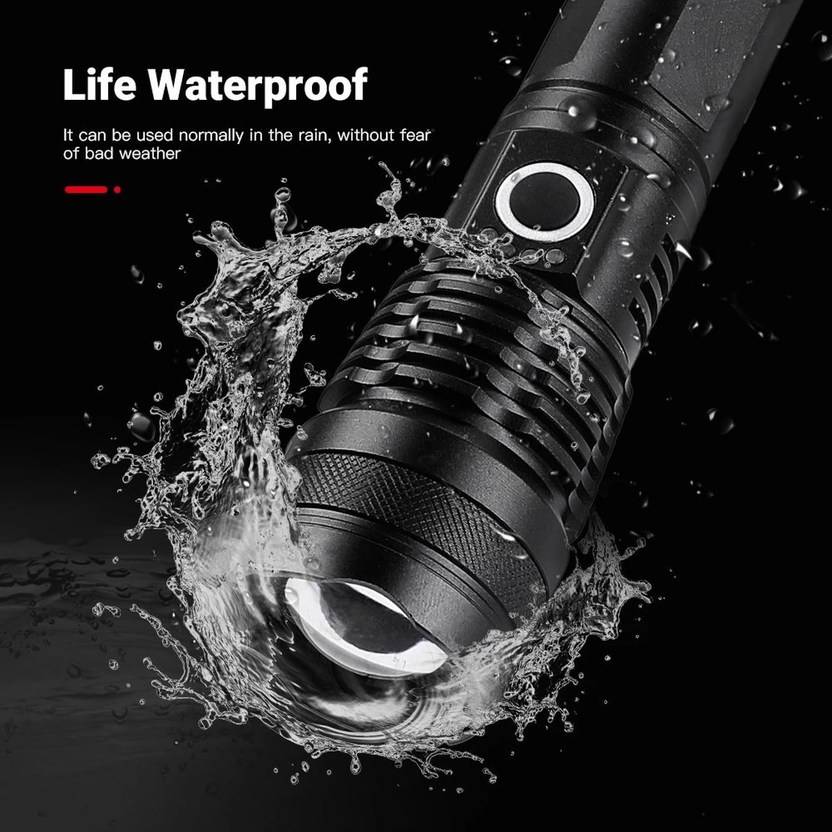La lampe de poche LED estétanche à IPX65 pour se protéger des projections d’eau dans toutes les directions. De cette façon, votre phare reste allumé lorsqu’il pleut.(Mais il ne peut pas être mis dans l’eau.)
