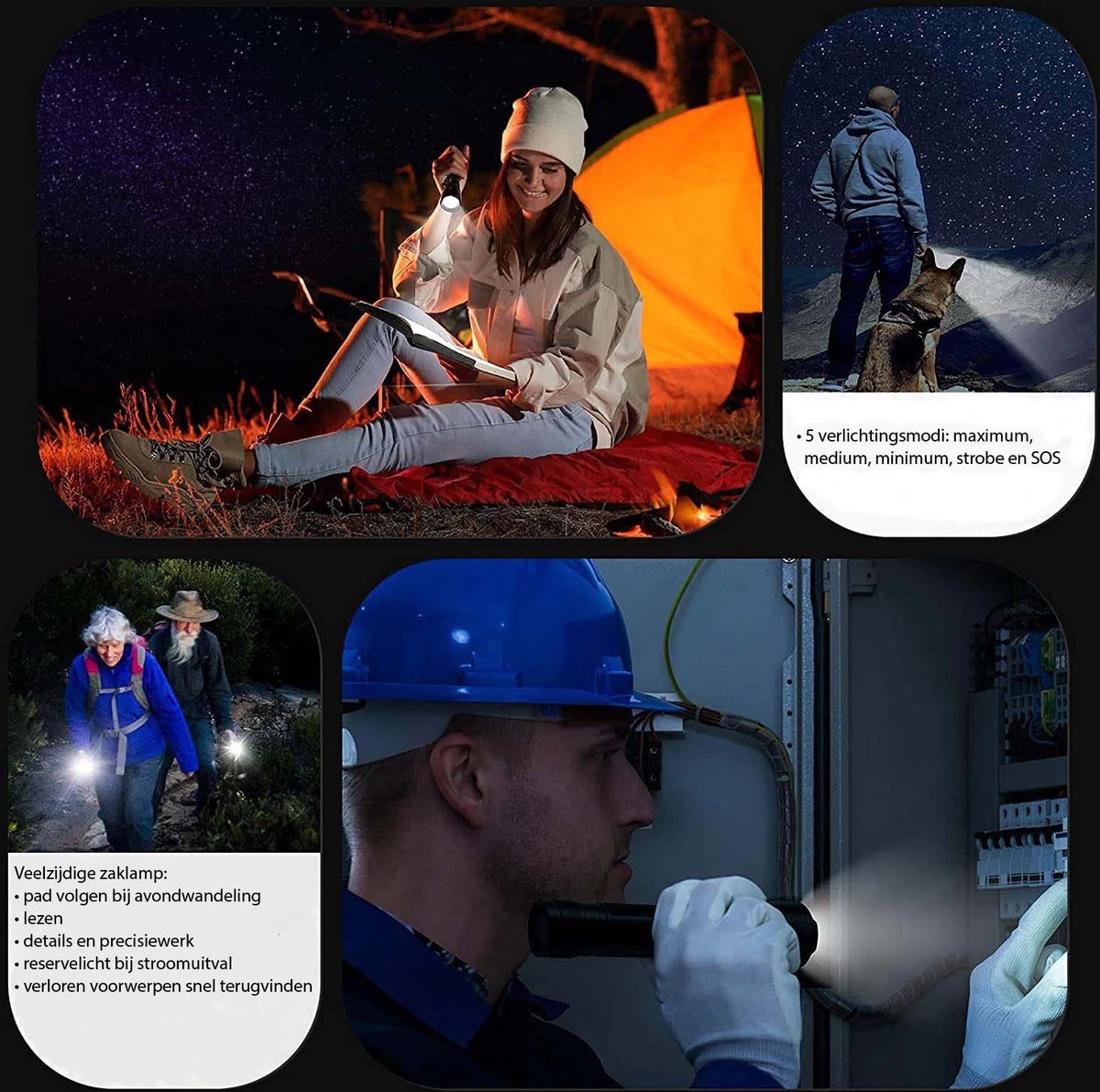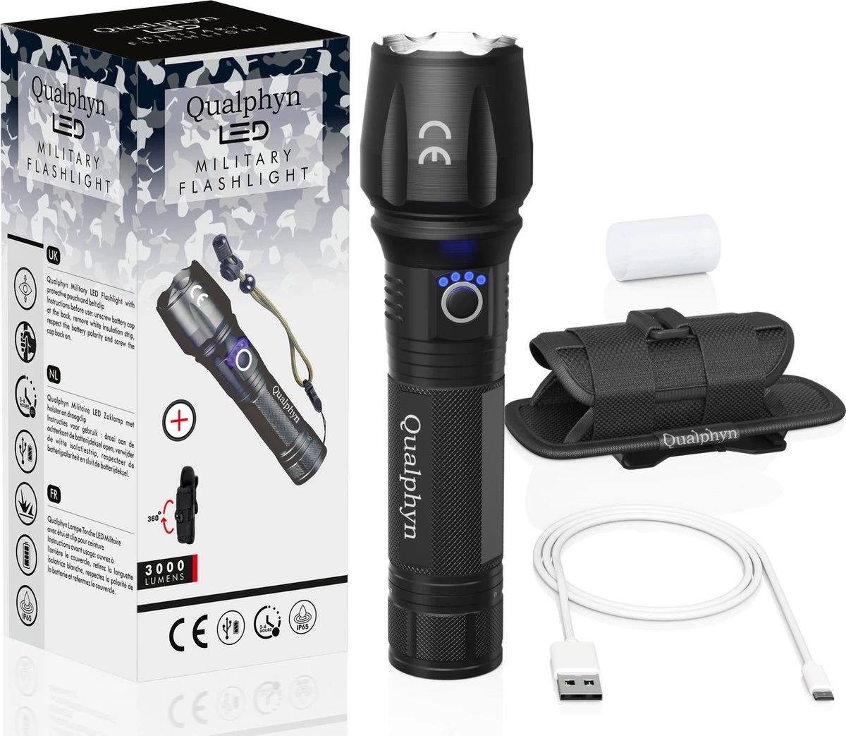 ✔️ 1x lampe de poche LED militaire rechargeable par USB de Qualphyn