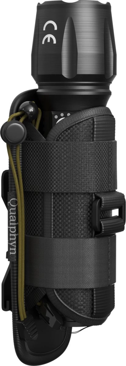 La lampe de poche LED a une mise au point réglable que vous pouvez entièrement adapter à vos souhaits. Repoussez vos limites dans toutes les conditions météorologiques : la lampe de poche tactique Qualphyn est étanche à la poussière et aux éclaboussures sous la classe de protection IP65.
