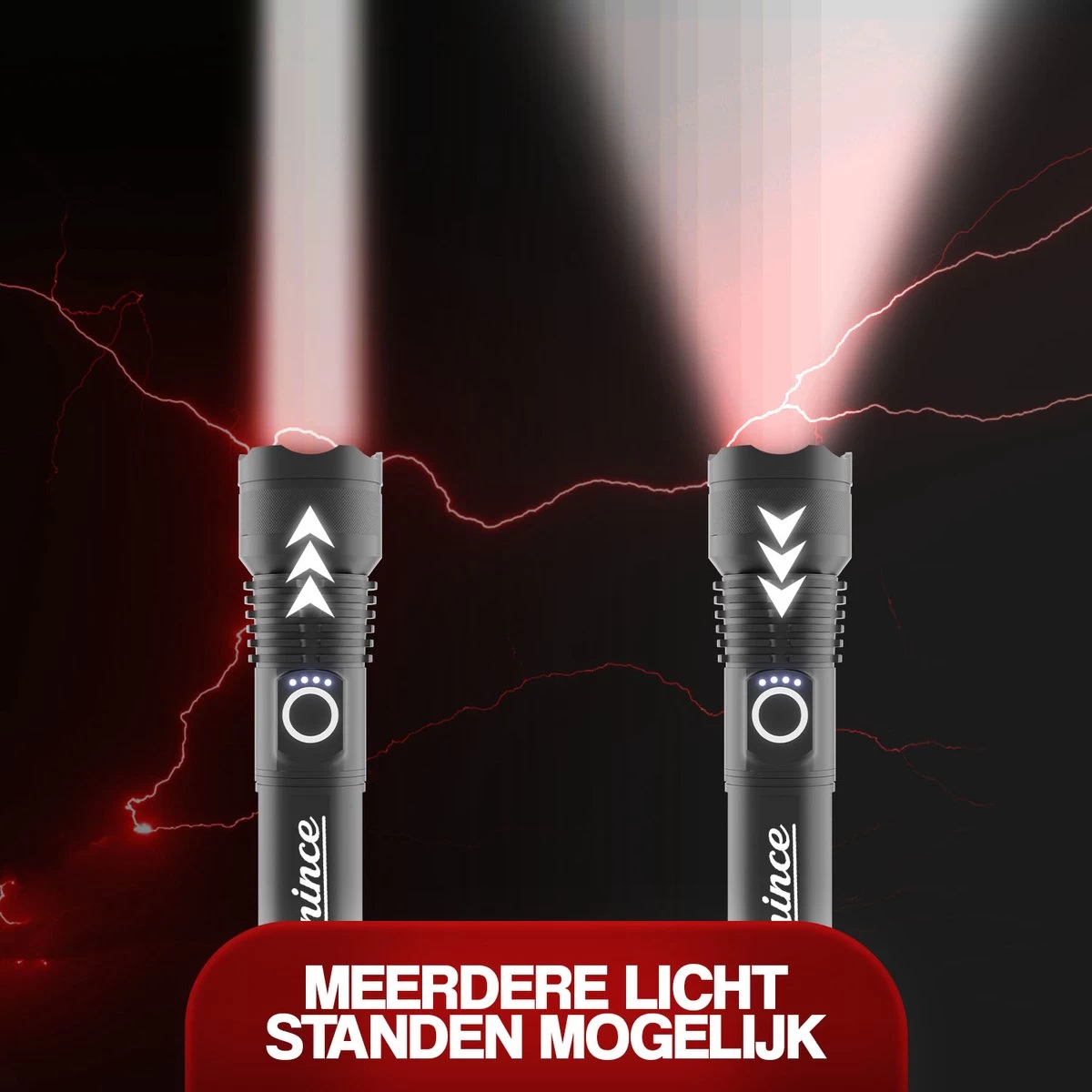 Avec 5 modes différents et une fonction zoom, vous êtes paré pour toutes les situations. Choisissez entre Haut, Medium, Bas, Stroboscope et SOS en appuyant simplement sur le bouton bascule. La fonction Stroboscope et SOS sont essentielles dans les situations d’urgence, par exemple pour effrayer les animaux en colère ou pour envoyer des signaux de détresse. Avec la fonction de mise au point réglable, vous pouvez choisir entre un projecteur ou un projecteur en étirant la tête de la lampe de poche. Effectuez un Zoom arrière pour une observation à longue distance et un zoom avant pour un éclairage à grande échelle. Cette lampe de poche vous donne le contrôle et la confiance dont vous avez besoin pour survivre dans n’importe quel environnement.