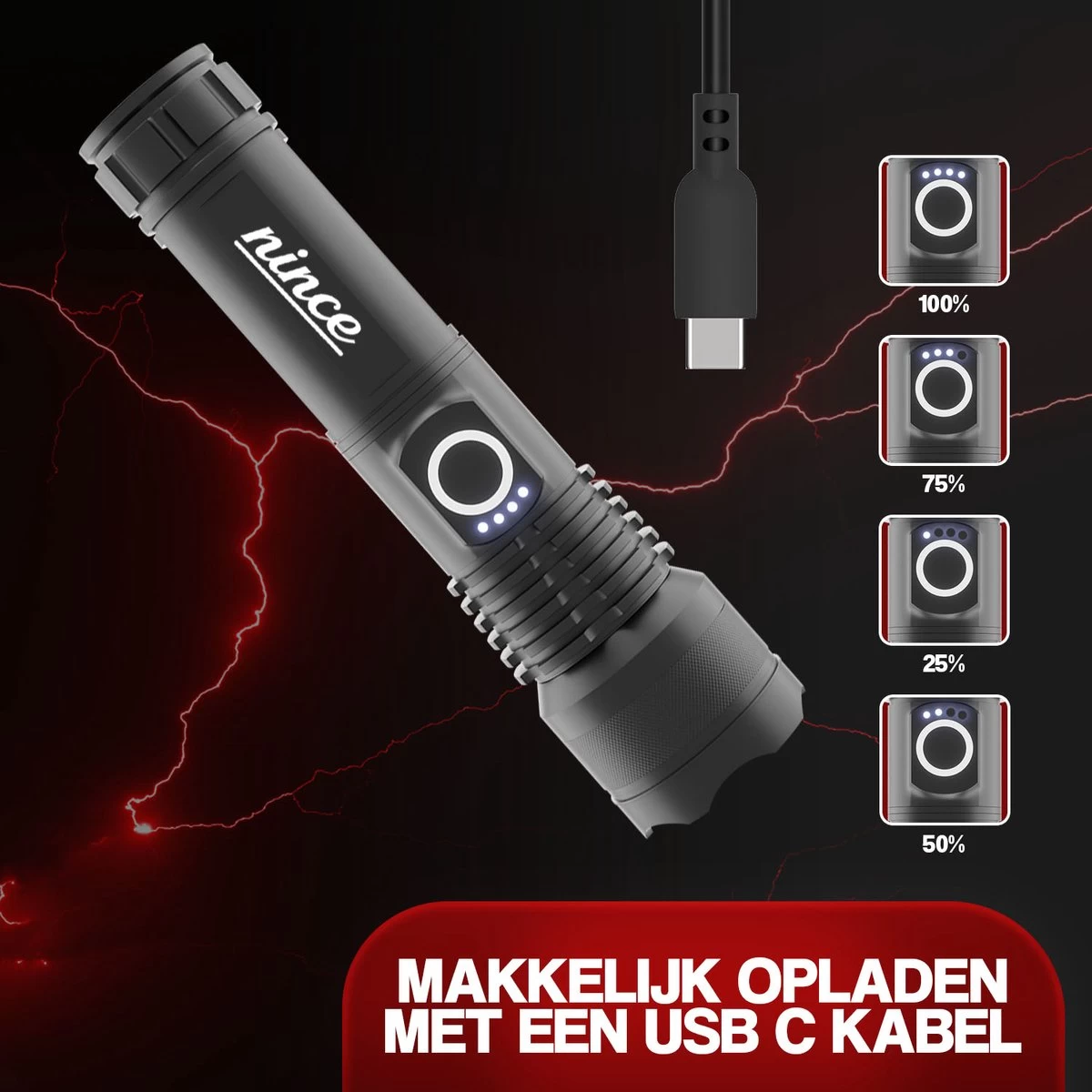 Que vous cherchiez désespérément vos clés perdues dans le noir, que vous campiez au milieu de la nature sauvage ou que vous vous promeniez simplement dans la nuit, la lampe de poche à LED Nince ne vous laissera jamais tomber . Avec une étonnante clarté de4000 lumens ,rechargeable batterie,5 modes d’éclairage différents et un pratiquefonction zoom , cette lampe de poche est votre compagnon fiable dans toutes les situations. Fabriqué en alliage d’aluminium de haute qualité et équipé deIPX5 performances étanches, cette lampe de Nince à led rechargeable est l’uneindispensable accessoire pour l’aventurier qui n’abandonne jamais.