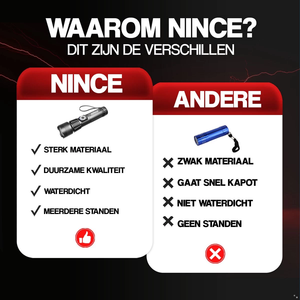 La lampe de poche Nince est fabriquée en aluminium durable qui est si robuste que même dans les situations d’urgence, une fenêtre peut être brisée avec le dos de la lampe (fonctionnalité Lifehammer ). De plus, cette lampe de poche peut résister à toutes les conditions possibles, grâce à son indice d’étanchéité IPX-5 et à sa conception robuste qui peut résister à des situations extrêmes. Que vous recherchiez un compagnon fiable pour les aventures en outdoor ou un équipement d’urgence, cette lampe de poche est là pour vous aider lorsque vous en avez le plus besoin.