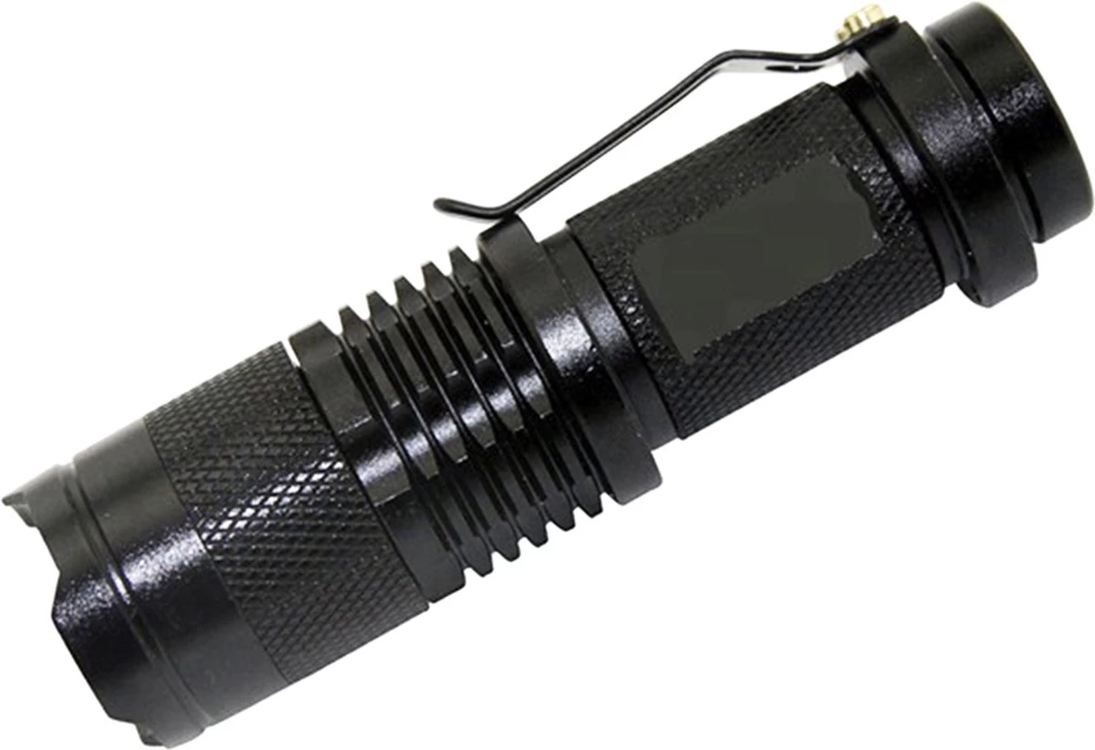 Alimentation de la lampe torche : 1 pile AA 1,5 V ou 1 pile rechargeable 17500 (non incluse !)