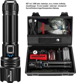 Avec une luminosité impressionnante de 10 000 lumens, cette lampe de poche est capable d’éclairer même les endroits les plus sombres. Il dispose de cinq modes d’éclairage différents, vous permettant d’ajuster la lumière en fonction de vos besoins. De plus, la lampe de poche est rechargeable par USB, vous pouvez donc facilement la recharger à l’aide d’un câble USB. Cette lampe de poche fonctionne jusqu’à 12 heures d’affilée.
