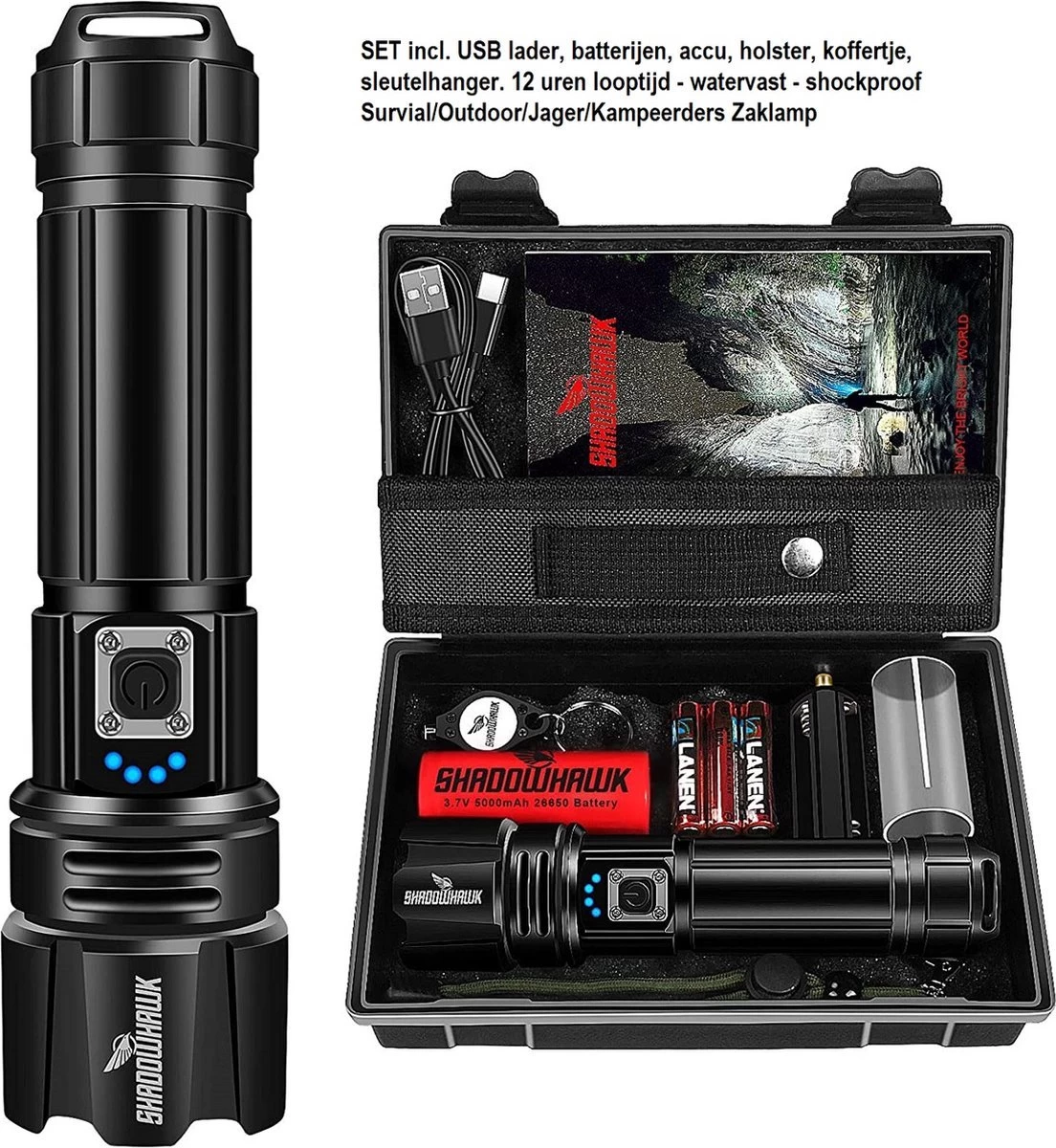 - 【Lampe de poche LED extrêmement lumineuse】 : la lampe de poche de 10 000 lumens est brevetée par l’UE. Avec la puce P70.2, cette lampe de poche tactique shadowhawk peut atteindre 1000 lumens. Fournit un faisceau incroyablement puissant et 10 fois plus lumineux que la lampe de poche normale. Une pièce de 120 mètres carrés peut être éclairée sans aucun problème, vous pouvez également focaliser des objets jusqu’à 500 mètres. Perfect pour outdoor, la randonnée, le camping, la pêche, les urgences et aussi un cadeau idéal pour les hommes.