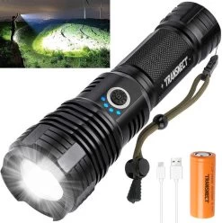 Avec 2800 lumens, rechargeable, 5 positions et une fonction zoom , la lampe de poche LED est votre partenaire fiable pour les activités de plein air ! De plus, la lampe de poche étanche IPX5 est fabriquée en alliage d’aluminium de haute qualité et a des performances d’étanchéité IPX5. Il dispose d’une autonomie en veille extra longue de 3 heures et comprend une batterie de secours à usage unique d’une durée de vie de plus de 100 000 heures.