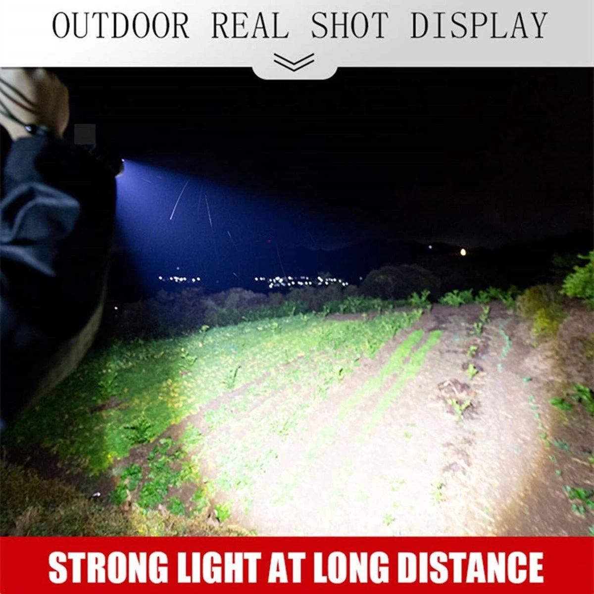 Cette lampe de poche adopte des perles LED XHP70 et COB pour une sortie de lumière brillante jusqu’à 100 000 lumens élevés.