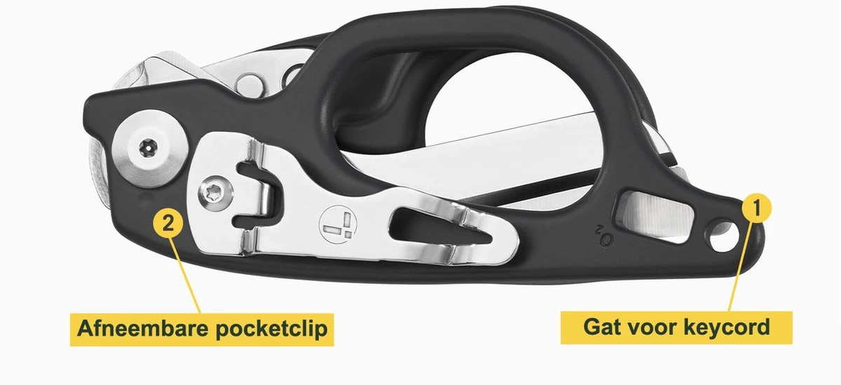 Le Raptor Rescue est conçu pour gérer à la fois la gauche etdroitier pouvoir utiliser. A l’arrière se trouve unclip de poche amovible avec lequel vous pouvez attacher le multi-outil à une poche ou à une ceinture. Il y a aussi un trou où uncordon clé peut être fixé en toute sécurité et en toute sécurité. Les poignées sont profilées, finies avec un revêtement en céramique durable et disponibles entrois couleurs . Fabriqué aux Etats-Unis.