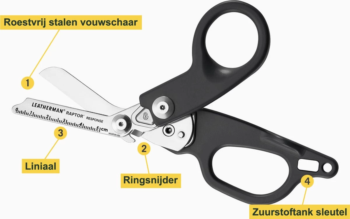 Préparez-vous à l’inattendu avec le Raptor Response. Les ciseaux compacts et portables coupent les matériaux et les micro dentelures sur la lame intérieureempêcher les tissus de glisser et lier ensemble. Il y a aussicoupe-bagues ,règle , uneclé pour bouteilles d’oxygène et unclip de poche afin que vous puissiez vous lancer dans n’importe quelle situation.