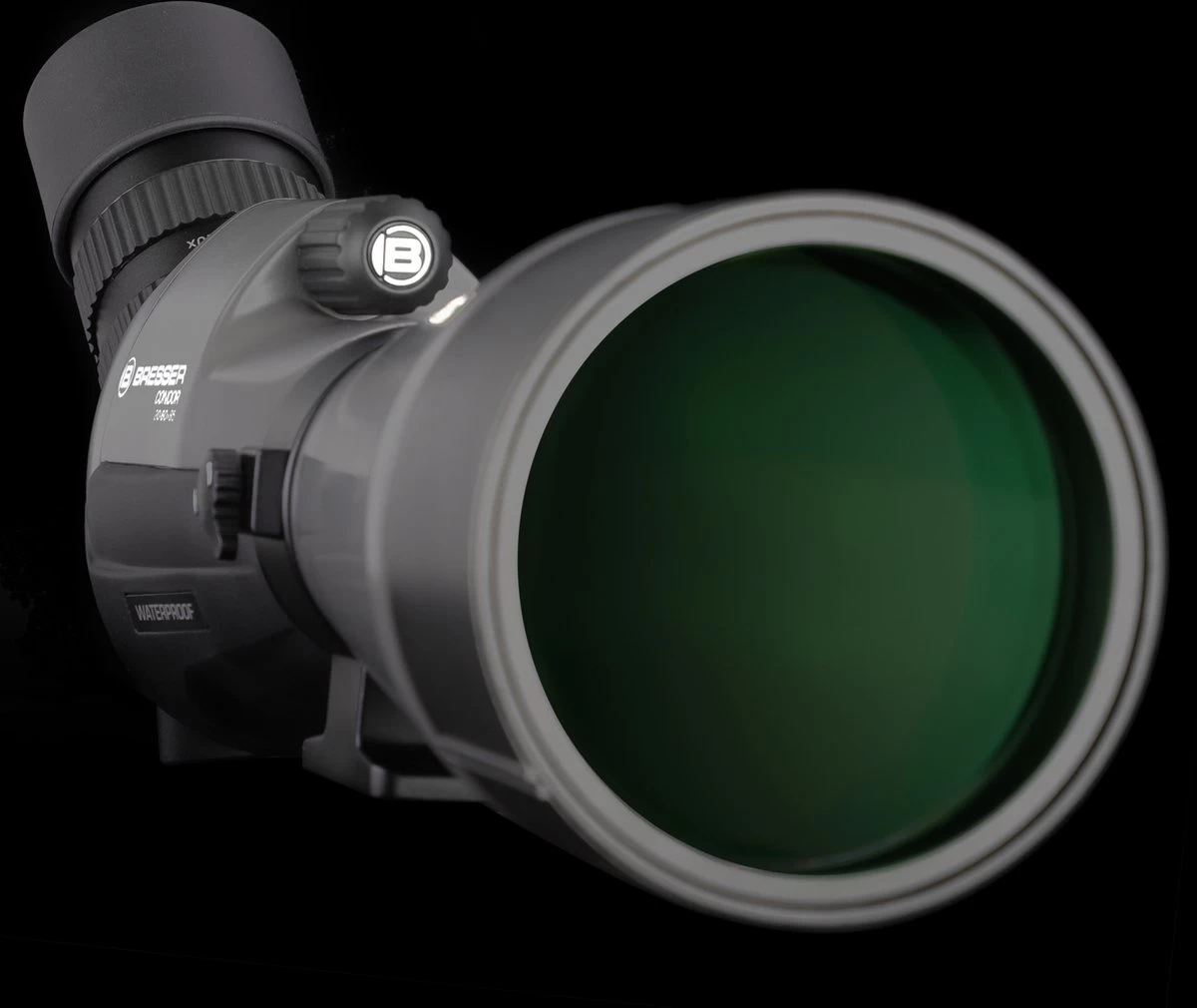 Le corps de la longue-vue étanche peut être pivoté à 240° via le collier de serrage avec plaque d’adaptation pour trépied. Cela permet même des positions d’observation inhabituelles. Le capuchon d’objectif rétractable sert à la fois de protection contre la rosée pour l’objectif et de protection contre la lumière solaire latérale (écran anti-éblouissement).