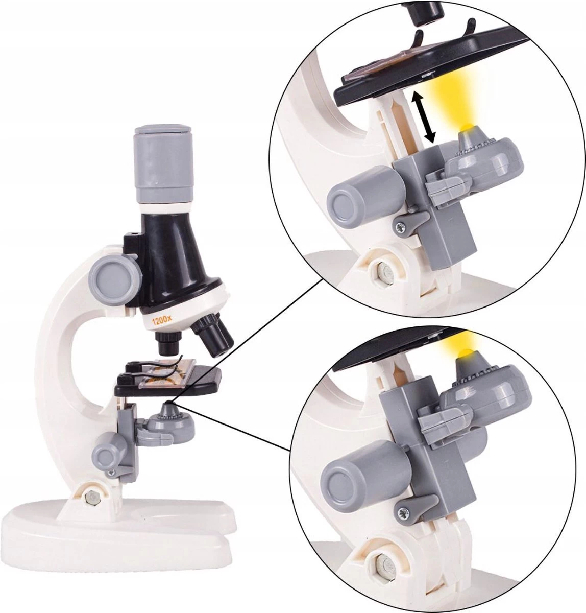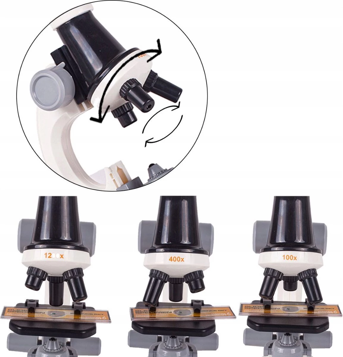 Présentez aux enfants les plus petites pièces qu’ils peuvent trouver. Ce microscope est idéal pour les enfants curieux et curieux qui aiment découvrir le monde. Le microscope peut grossir jusqu’à 100x, 400x et même jusqu’à 1200x.