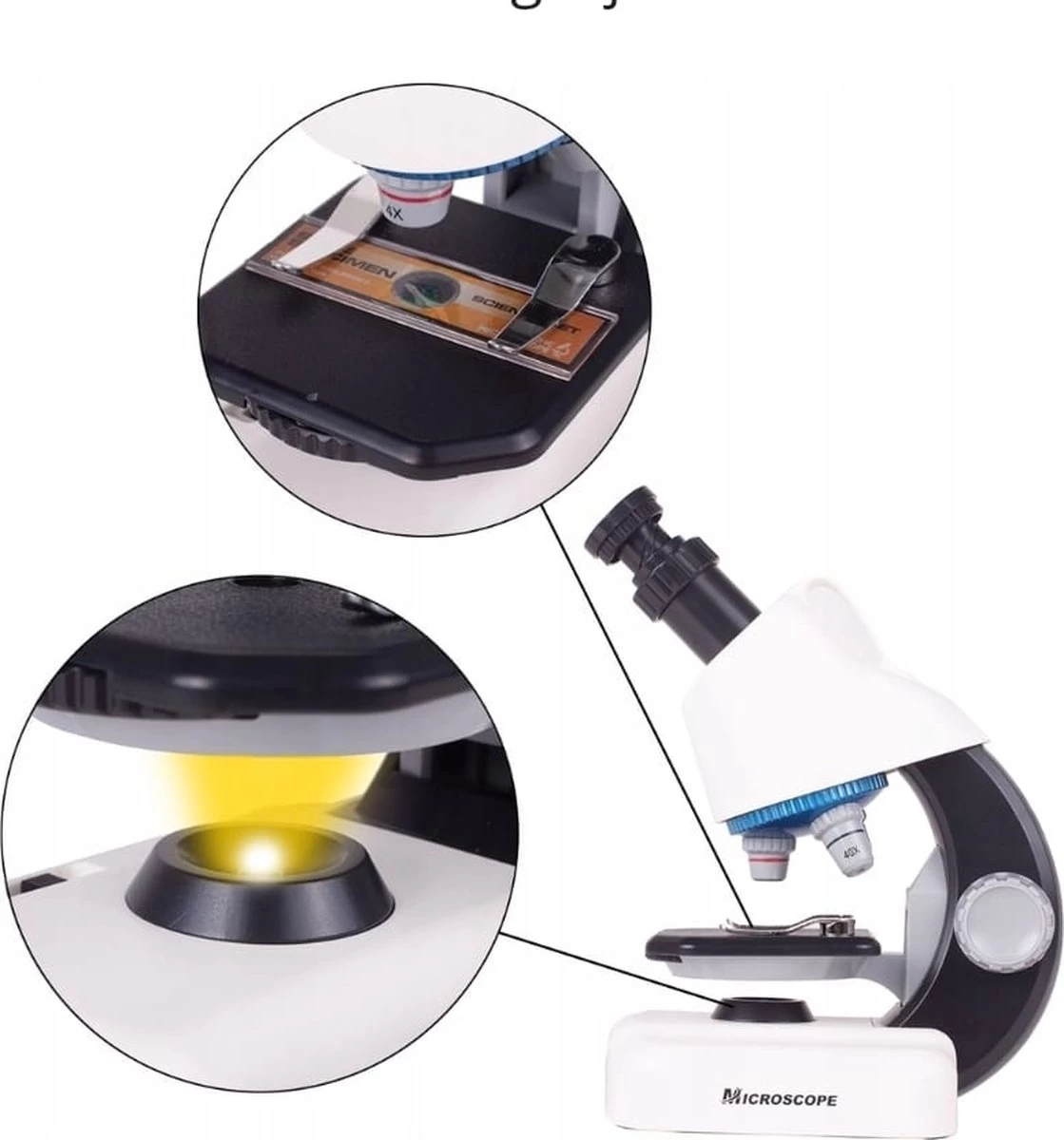 L’ensemble parfait pour le petit scientifique. Grâce à ce microscope, vous offrirez à votre enfant des heures inoubliables pleines de nouvelles découvertes du micromonde, contribuerez à développer sa curiosité et découvrirez ses passions. Le microscope portable avec un ensemble d’accessoires nécessaires initie le jeune scientifique au monde de la microbiologie et lui permet d’observer de petits objets. Le laboratoire d’accueil permet de découvrir à quel point le monde des sciences peut être fascinant.