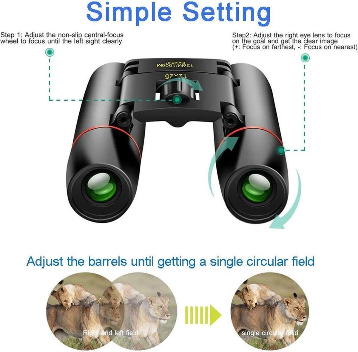 FONCTIONNEMENT FACILE: Mini jumelles s’ajustent à l’aide du bouton de mise au point central lisse et de la lentille de l’œil droit. mise au point facile même pour les enfants.
