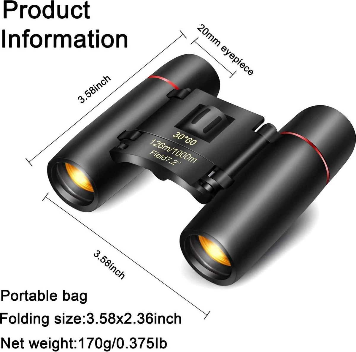 COMPACT ET LÉGER: Petites jumelles pliables, peuvent être conservées dans un sac à dos et une poche, bonne idée pour les voyages et la randonnée, les meilleurs cadeaux pour adultes et enfants. Le revêtement protecteur en caoutchouc le rend utilisable pour résister aux conditions météorologiques les plus difficiles et une plus grande durabilité.