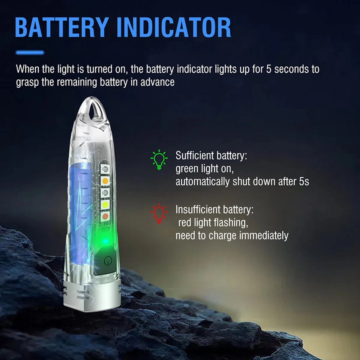 【Portable et Léger】 La taille est de 7,3 cm × 1,5 cm, une mini lampe de poche porte-clés qui peut être transportée. Équipé d’un porte-clés, qui peut être combiné avec des porte-clés et des sacs. De cette façon, il peut fournir la lumière vive dont vous avez besoin à tout moment, afin que vous puissiez profiter du camping ou des activités de plein air aventureuses.