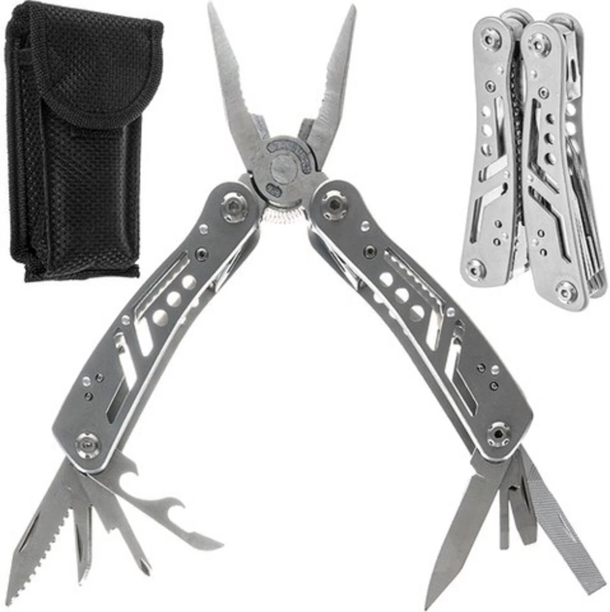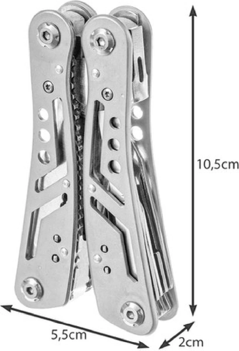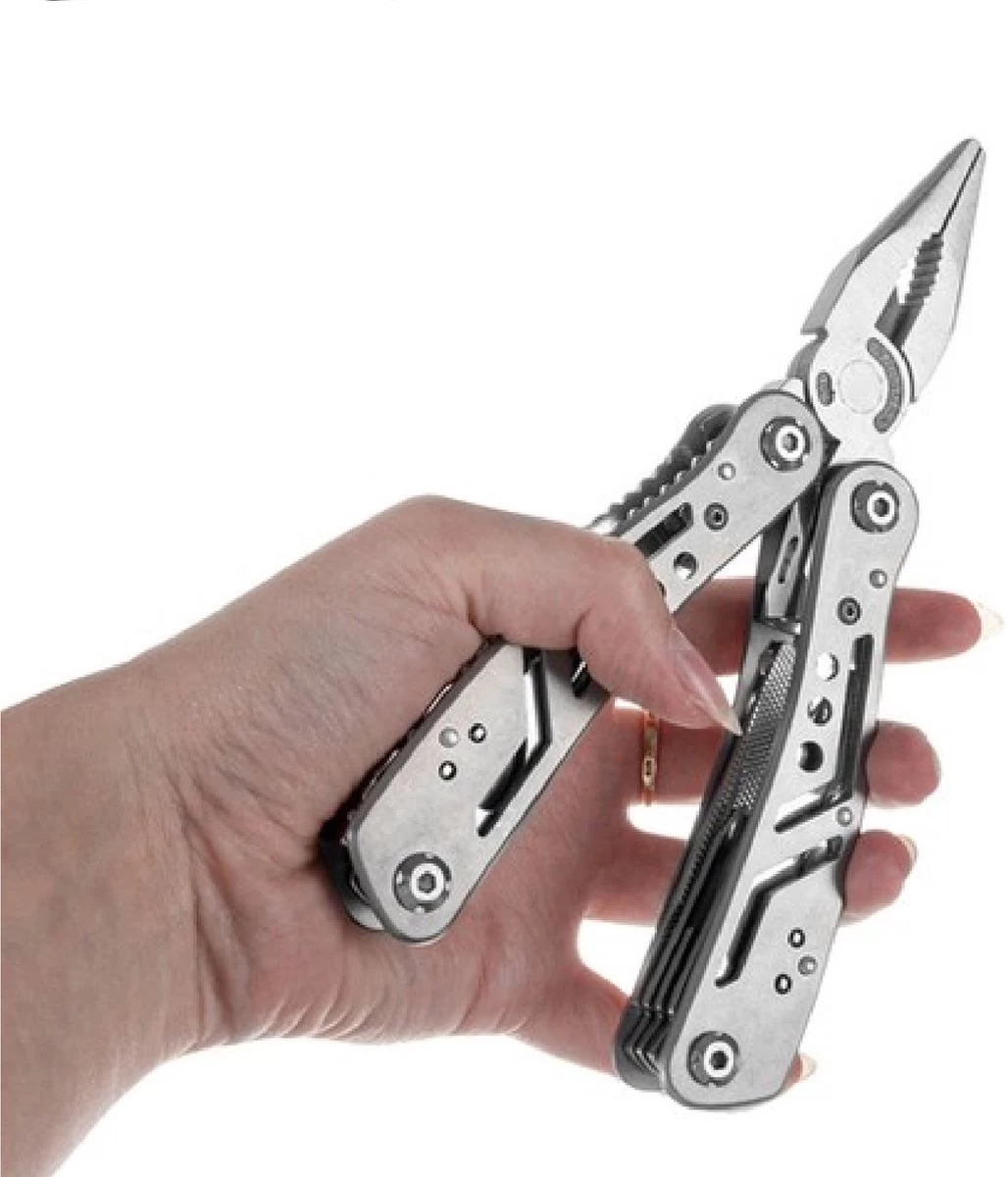 pymiq® Multitool avec 13 outils différents intégrés adaptés à la survie, à la pêche, à la randonnée, au camping, au travail ou au bricolage et au jardinage. Le Multitool est équipé d’un couteau, d’une lame de scie, d’une pince, d’un ouvre-bouteille, d’un ouvre-boîte, d’un tournevis, d’un couteau de poche, d’une pince, d’un couteau et plus encore.