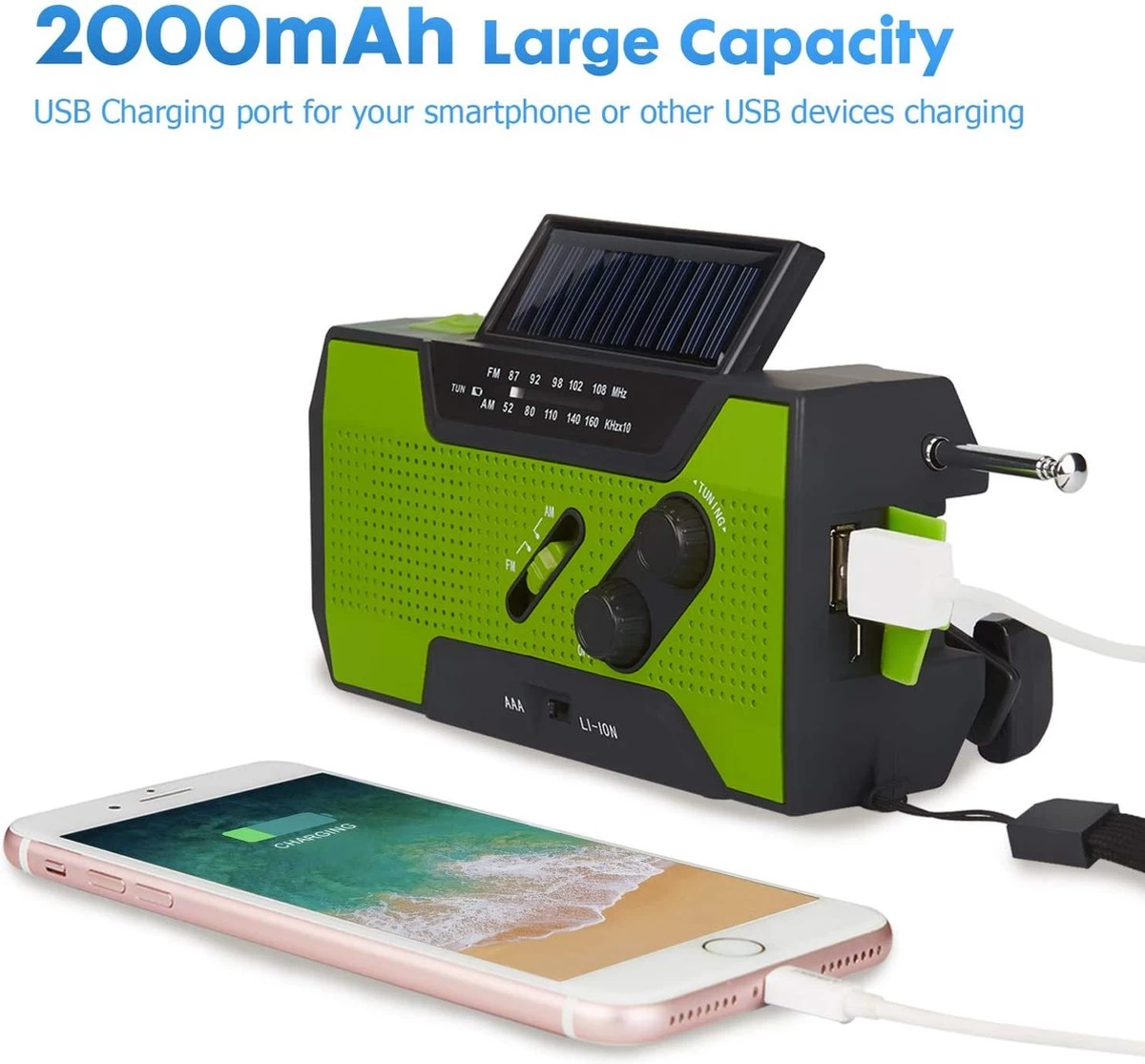Cette radio solaire avec batterie de 2000 mAh peut être chargée comme une banque d’alimentation pour votre téléphone portable, votre tablette et d’autres appareils. Ne vous inquiétez pas de la perte soudaine de puissance de votre téléphone portable à l’extérieur.