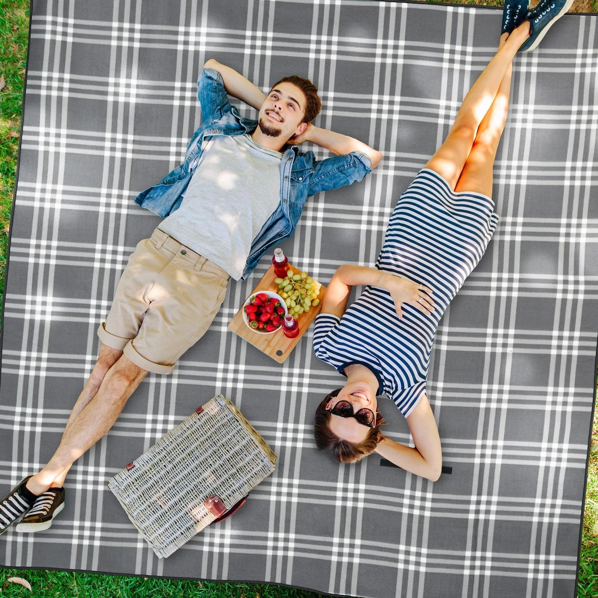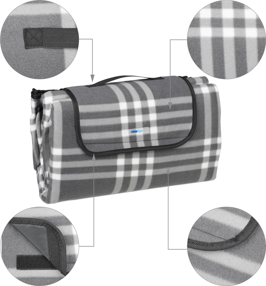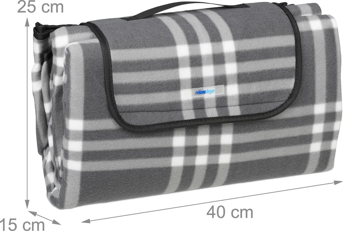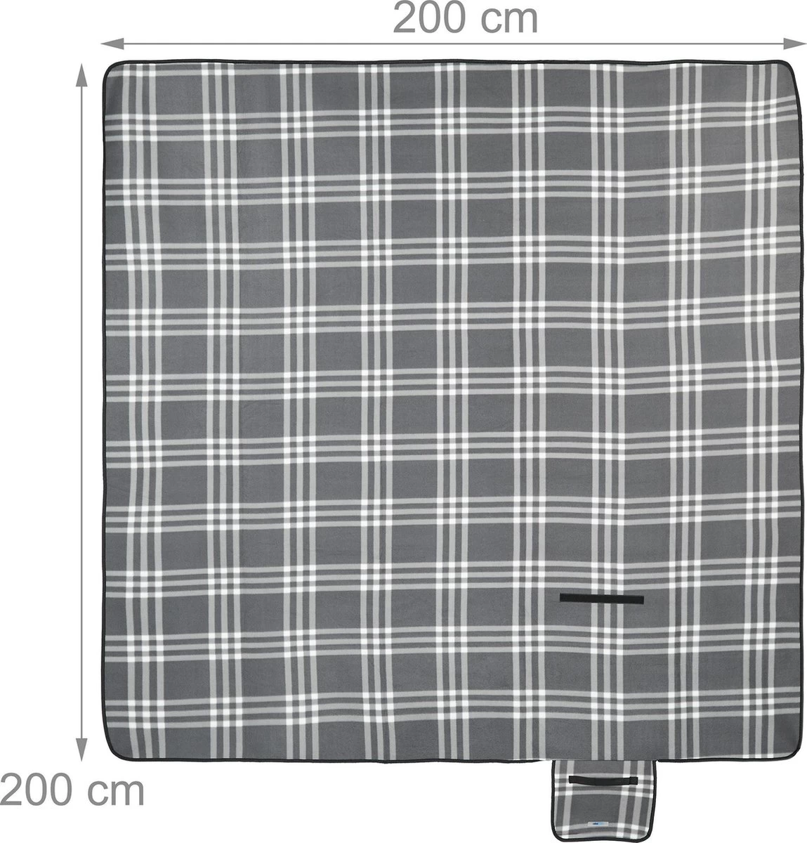 Relaxdays Couverture De Pique-nique à Carreaux Gris-blanc – 200×200 Cm – Couverture De Pique-nique – Couverture De Camping