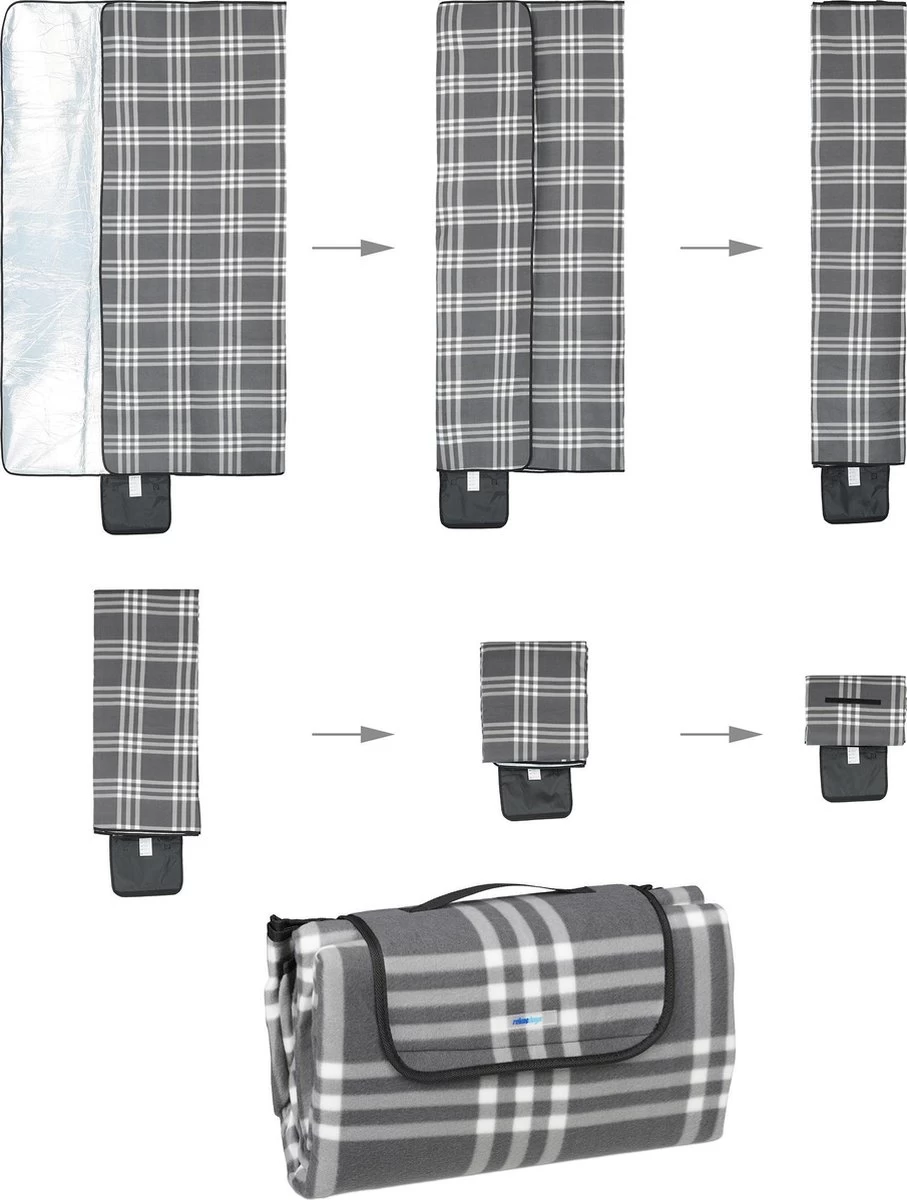 Cette couverture de pique-nique pliable est pratique pour les activités de plein air en été. La couverture en molleton doux peut accueillir confortablement 4 à 6 personnes. Parce que le tapis est doux, il est très confortable de s’asseoir et de s’allonger. Le revêtement en aluminium empêche le froid et l’humidité de pénétrer dans le sol. Profitez du soleil ou d’un barbecue entre amis et en famille. La couverture de pique-nique est facile et rapide à plier et peut être facilement transportée grâce à la poignée. Plumage de pique-nique imperméable en détail – Dimensions L x P : 200 x 200 cm – Plié H x L x P : 25 x 40 x 15 cm – Epaisseur de la couverture : environ 0 cm – Poids : environ 0 kg – Matériau : polyester, aluminium – Couleur : Grijs, blanc Tapis d’extérieur XXL avec motif – Surface agréablement douce en polaire de haute qualité – Revêtement en aluminium imperméable et isolant – Groot tapis pouvant accueillir quatre à six personnes – Le tapis de camping peut être plié pour économiser espace et est facile à transporter – Pour pique-nique, barbecue, plage, camping, etc. La livraison comprend – 1x couverture de pique-nique – La Décoration n’est pas incluse