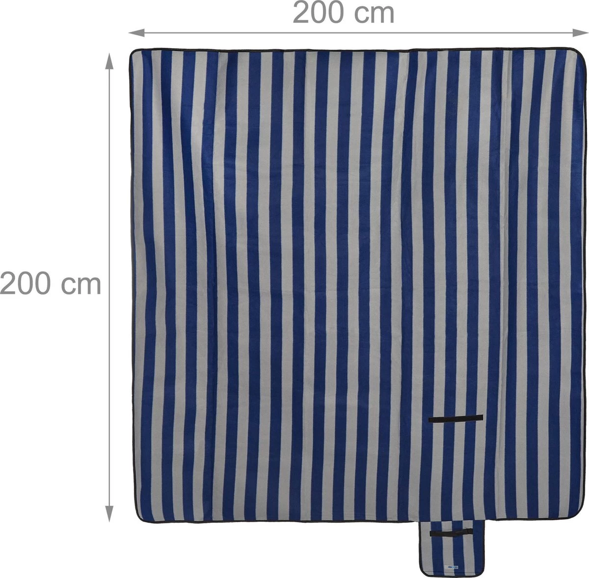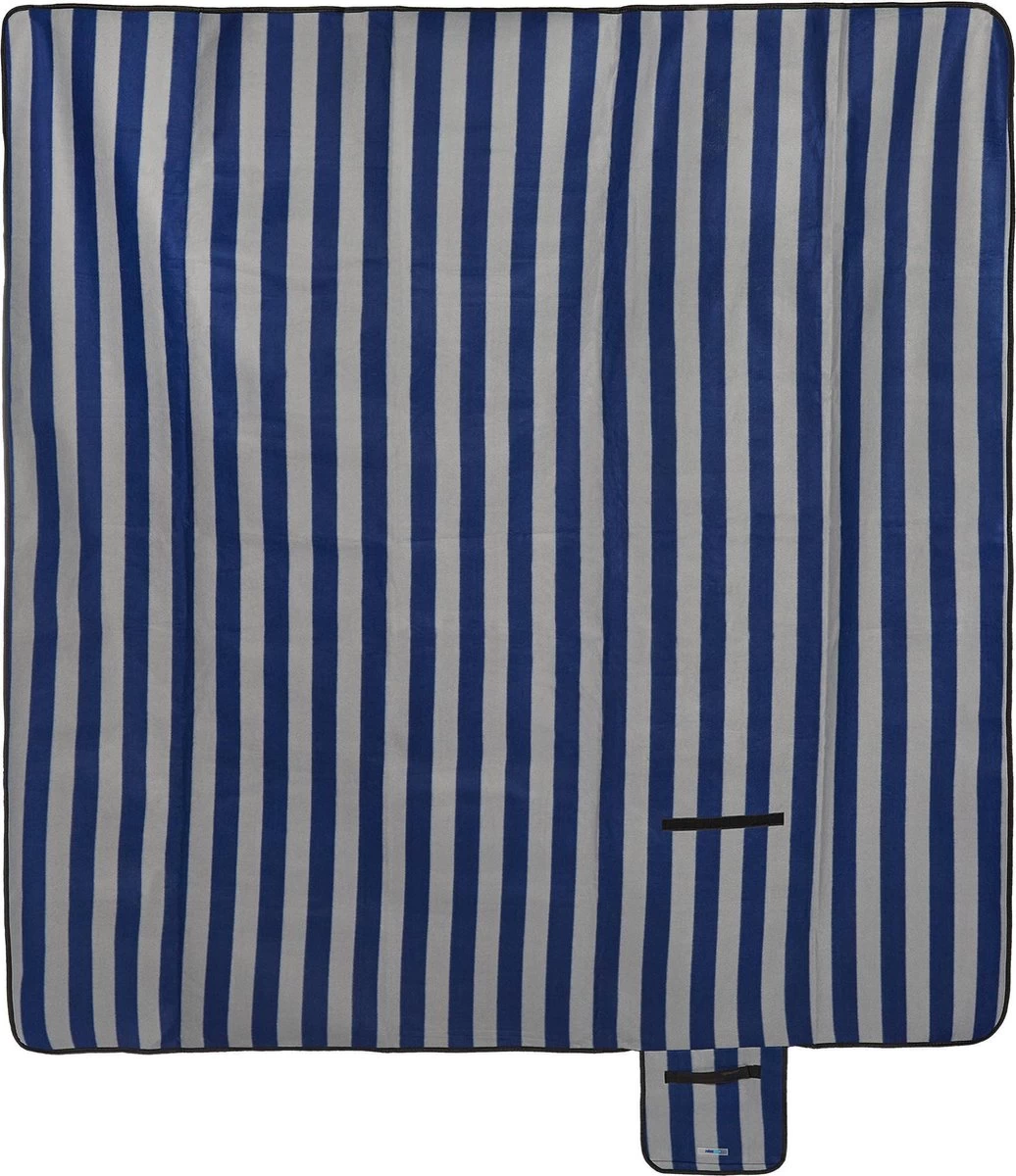 Relaxdays Couverture De Pique-nique Rayé Bleu-gris – 200×200 Cm – Couverture Polaire – Serviette De Plage Xxl