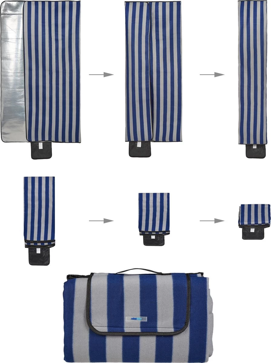 Cette couverture de pique-nique pliable est très utile pour les activités de plein air en été. 4 à 6 personnes peuvent s’asseoir confortablement ensemble sur la couverture polaire douce. Comme le tapis est doux, il est très confortable de s’asseoir et de s’allonger. Le revêtement en aluminium empêche le froid et l’humidité de pénétrer dans le sol. Profitez du soleil ou d’un barbecue entre amis et en famille. La couverture de pique-nique est facile et rapide à plier et peut être facilement transportée grâce à la poignée. Plumage pique-nique imperméable en détail – Dimensions L x P: 200 x 200 cm – Plié H x L x P: 25 x 40 x 15 cm – Épaisseur de la couverture: environ 0, 2 cm – Poids: environ 0, 9 kg – Matière: Polyester, aluminium – Couleur: Blauw, gris Couverture polaire XXL imperméable – En polaire douce et de haute qualité – Couche d’aluminium imperméable et isolante – Groot tapis pouvant accueillir quatre à six personnes – Tapis de camping peu encombrant, facile à plier et transporter – Pique-niques à l’avant, barbecues, sur la plage, camping, etc. La livraison comprend – 1x drap de plage – La Décoration n’est pas incluse dans la livraison